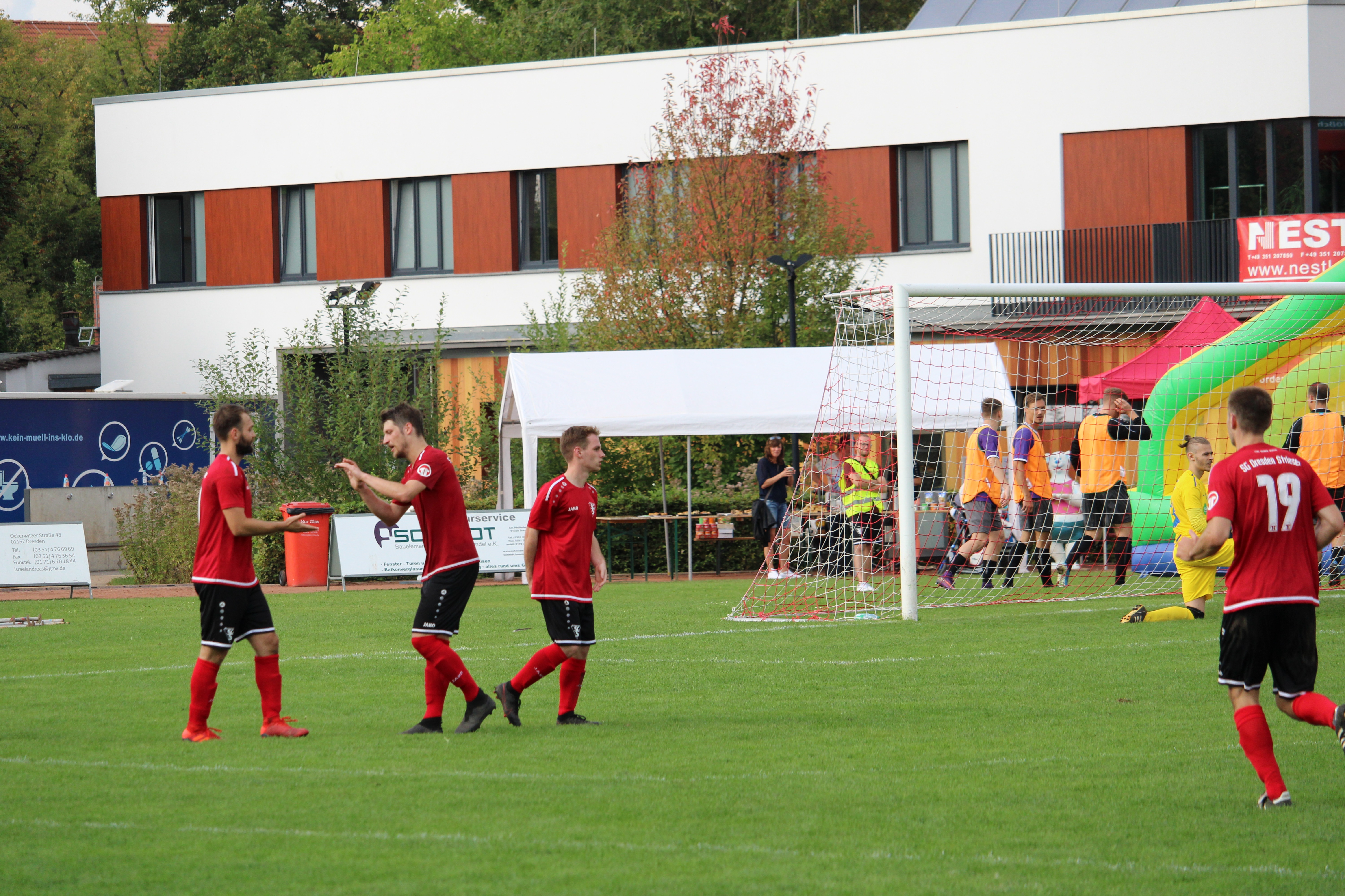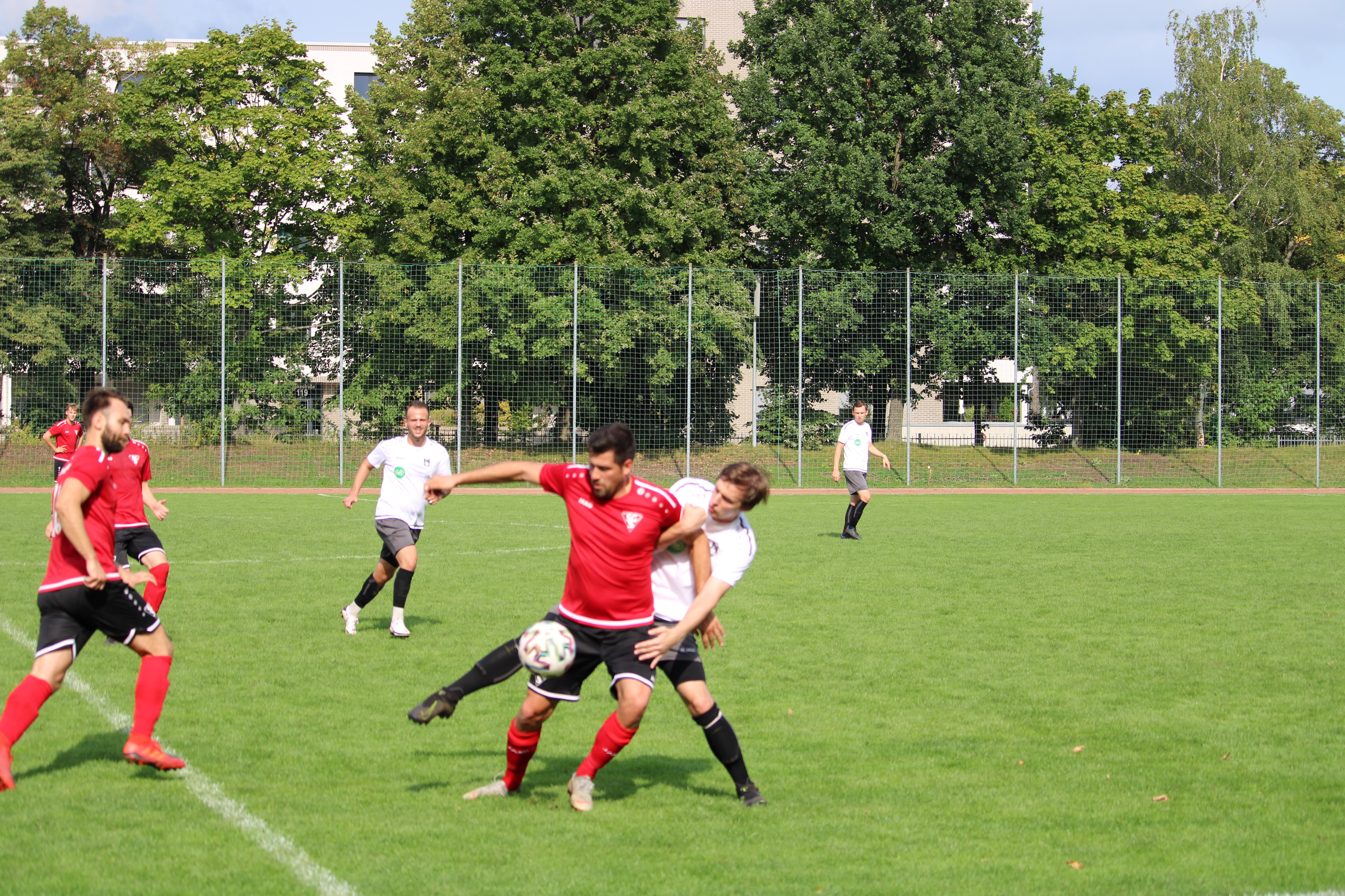 Im Anschluss durfte die Zweite das Fest sportlich eröffnen. Im Derby gegen die Zweite des SV Helios 24 gewann man vor weit über 100 Zuschauern verdient 6:2. Somit konnte man beschwingt den Abend bei ein wenig Musik und kühlen Getränken ausklingen lassen.