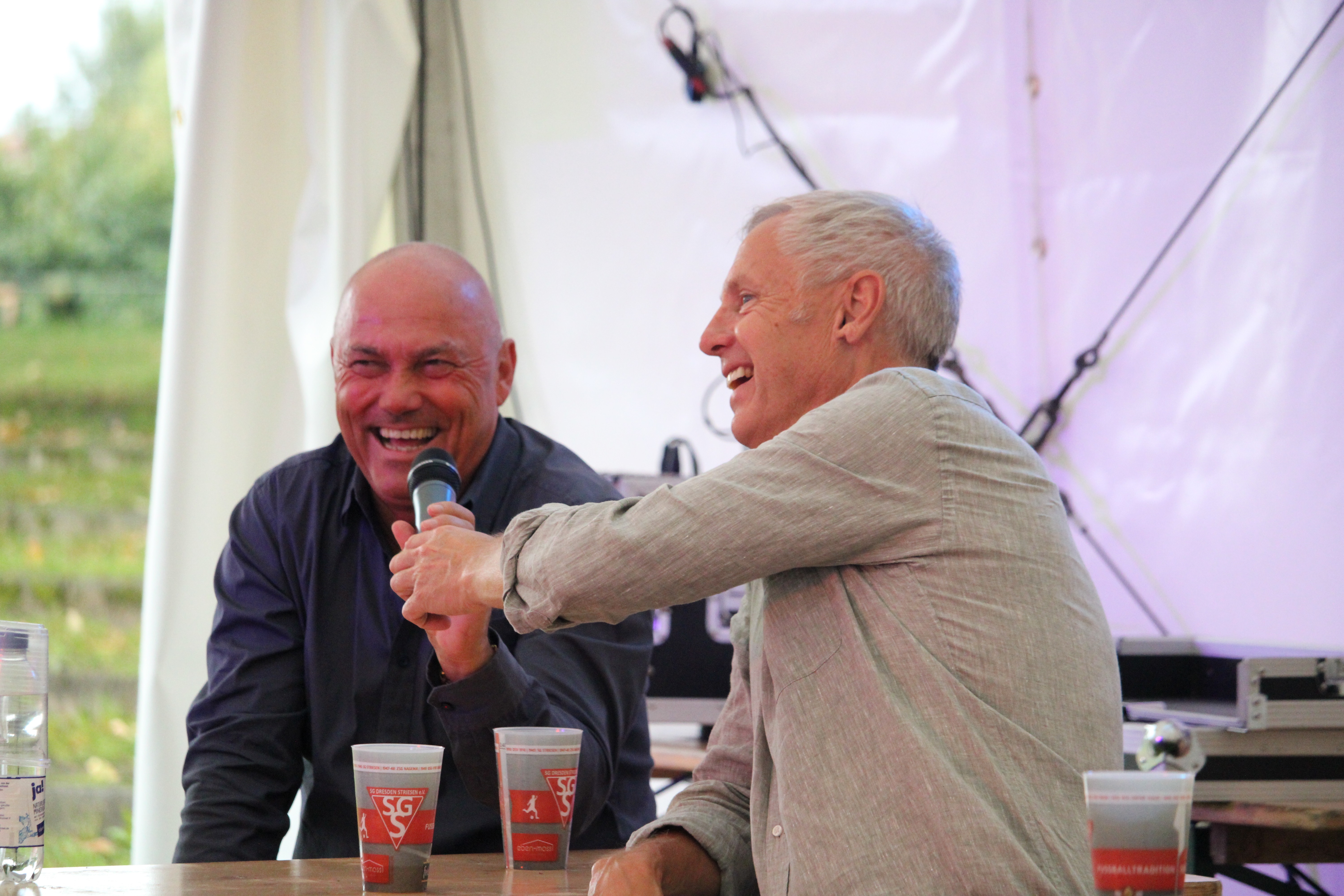 Die Feierlichkeiten begannen am Freitag mit einem Fußballstammtisch. Gäste waren Rainer Ernst und Matthias Döschner und plauderten über eine Stunde in einer lockeren Atmosphäre über ihre ereignisreichen Karrieren.
