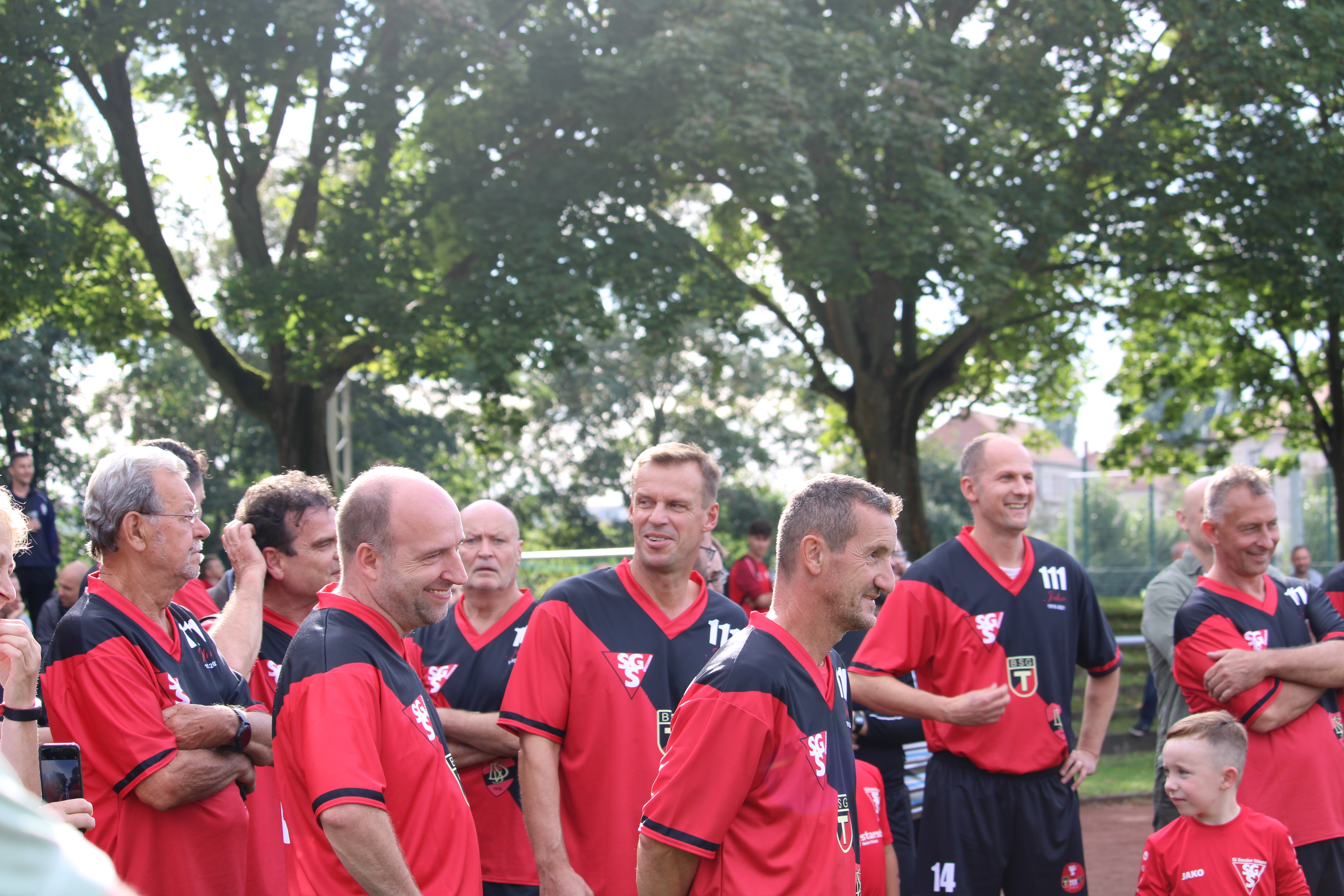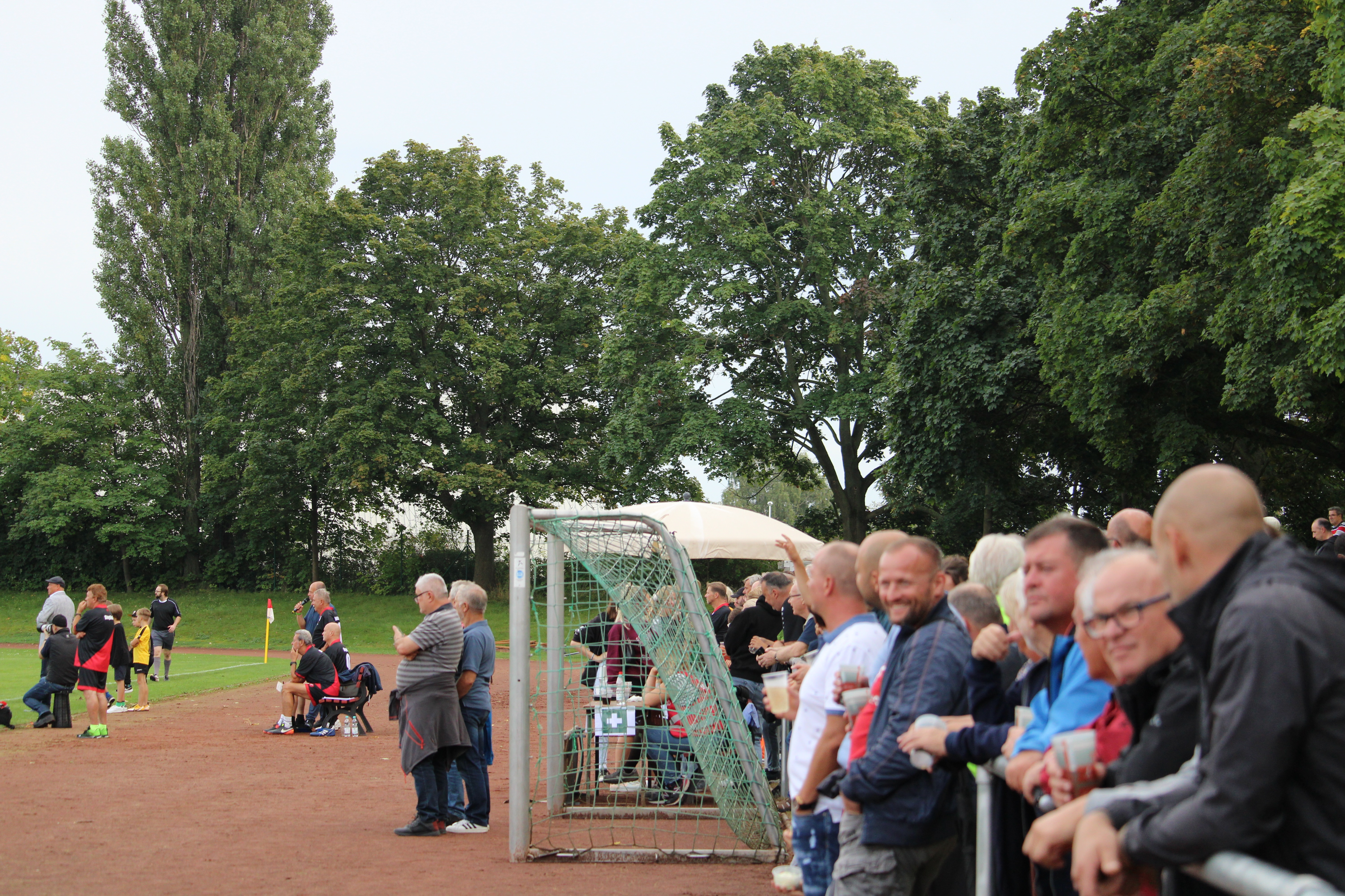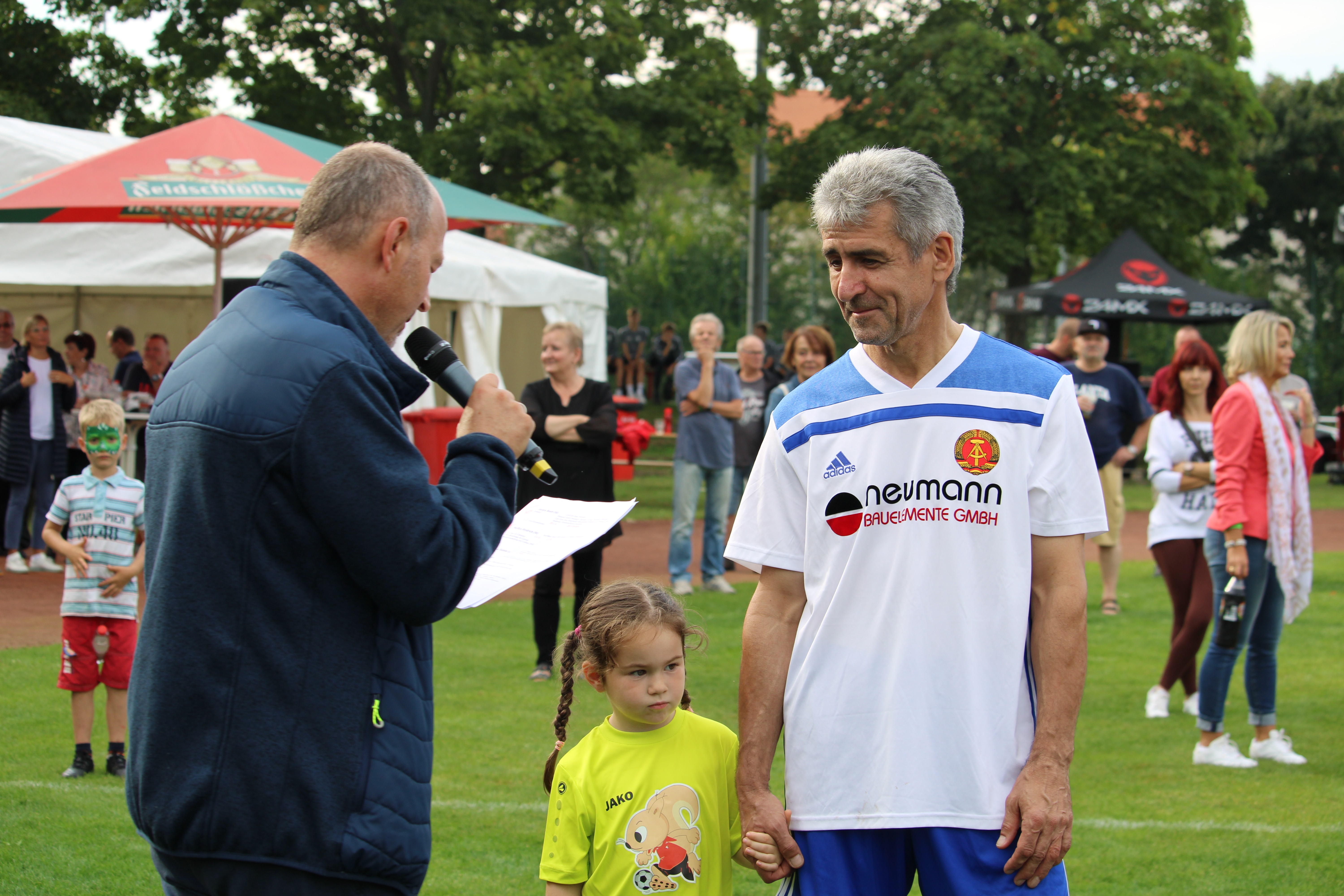 Direkt danach fand das große Spiel der Alten Herren gegen die Ostfußball-Nationalmannschaft statt. Vor dem Anstoß wurden noch unsere A- und C2-Junioren für ihre Aufstiege in die Landesklasse hochgelebt. Nach einer Vorstellung der Anwesenden DDR-Kicker startete die Partie der Alten Herren. Ein lockeres Spielchen mit einigen Toren, wenn auch mehr für die Gäste, die 6:1 gewannen.