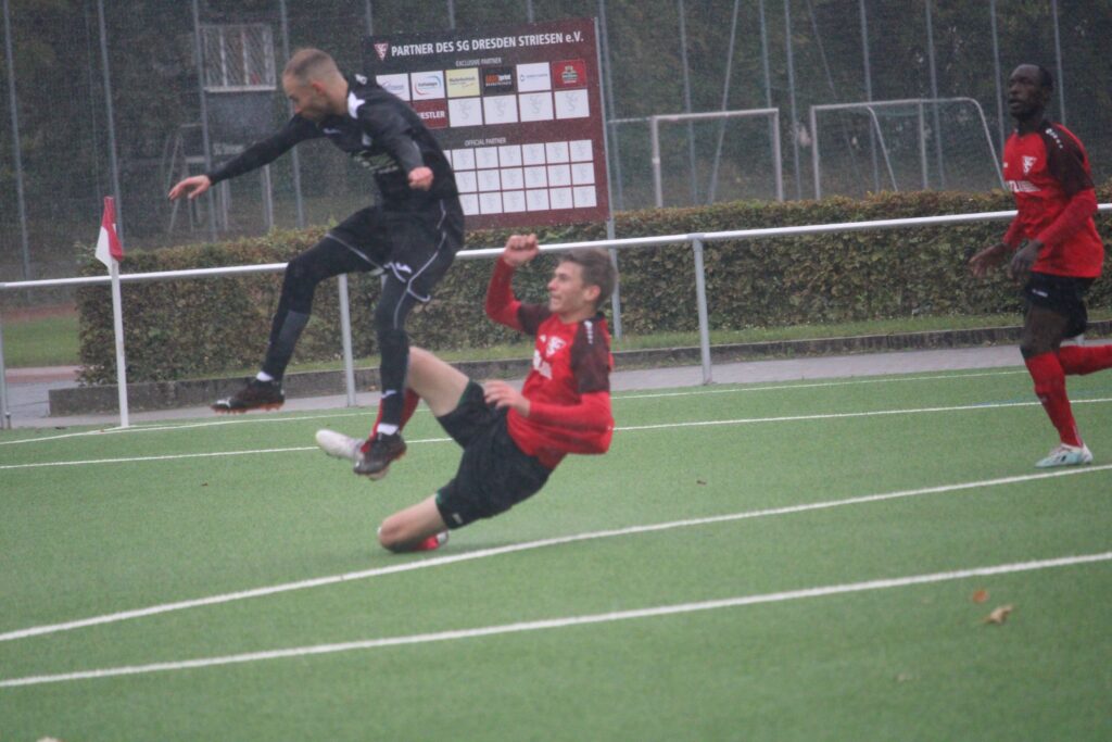 Dabei begann die Partie äußerst verheißungsvoll und unsere Mannen fanden perfekt in die Partie. Bereits in den Anfangsminuten konnte man erste Offensivaktionen verzeichnen und in der achten Minute gab es bereits den ersten Jubel. Nach einer Hereingabe können die Dohnaer noch klären, doch der Ball landet bei Levin Thäsler, der am Sechszehner lauert und aus dem Hinterhalt zur Führung trifft. Drei Minuten später war es Yannick Born der nach einer Ecke zur Stelle war und direkt den zweiten Treffer nachlegte. Im Anschluss konnte man durch Yannek Wolf und Ismaila Drabo weitere Chancen verzeichnen. In der 18. Minute nutzte dann Eric Zimmermann einen Schnitzer der Dohnaer Hintermannschaft und markierte den dritten Treffer. Danach schlugen die Gäste zu. Nach einem Fehlpass der Unseren konterte Dohna und schaffte den Anschlusstreffer. Ein erneuter langer Ball brachte den Gästen in der 24. Minute einen Strafstoß ein, welcher zum 3:2 genutzt wurde. Bereits drei Minuten später war die Partie wieder ausgeglichen, als ein Freistoß den direkten Weg in die Maschen fand. Striesen versuchte danach den Rückschlag wieder abzuschütteln und wieder die Führung herbeizuführen. Dabei konnte man wieder einige Strafraumaktionen verzeichnen. Die Beste besaß Drabo kurz vor der Pause, als er den Pfosten traf.