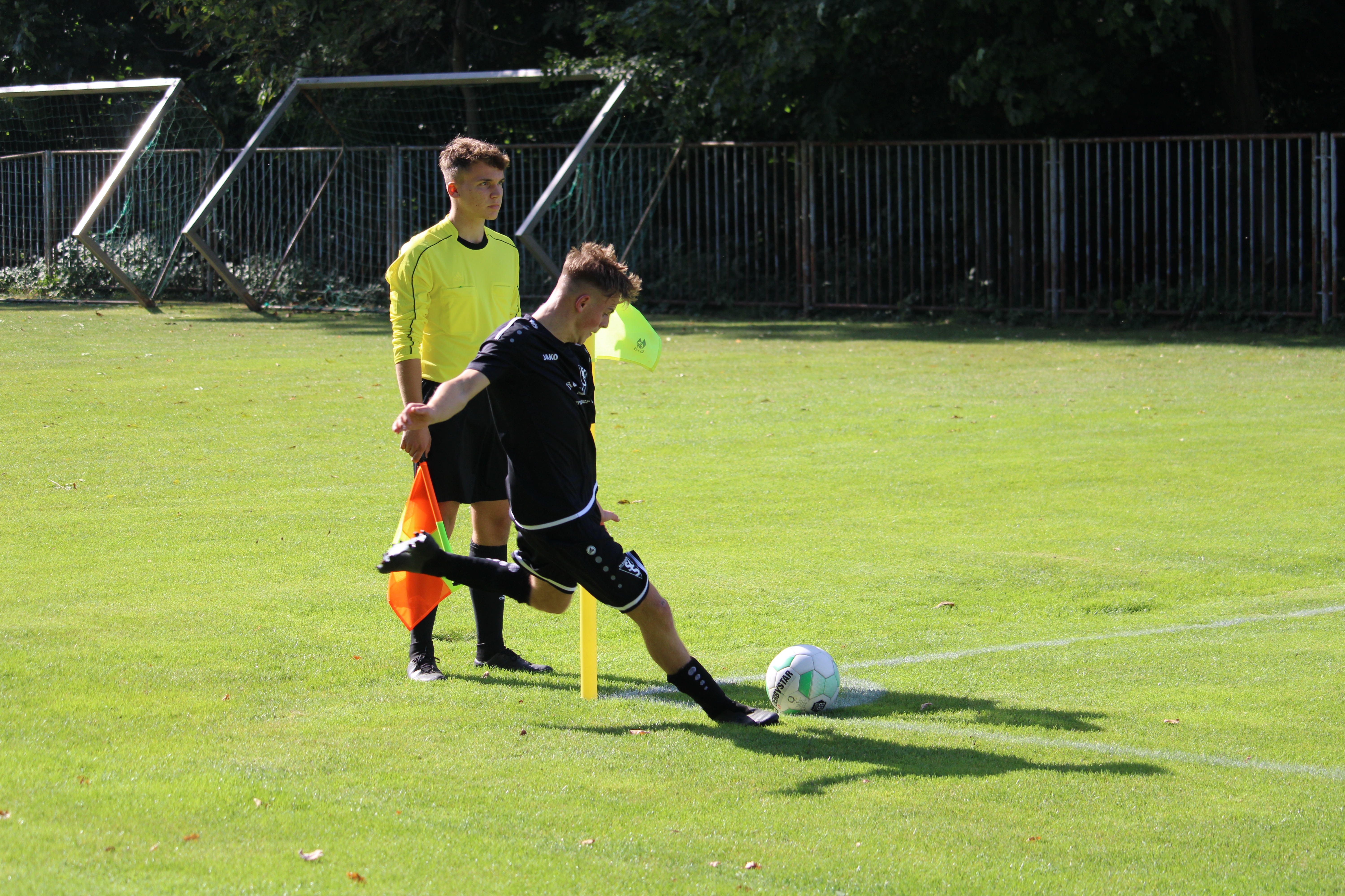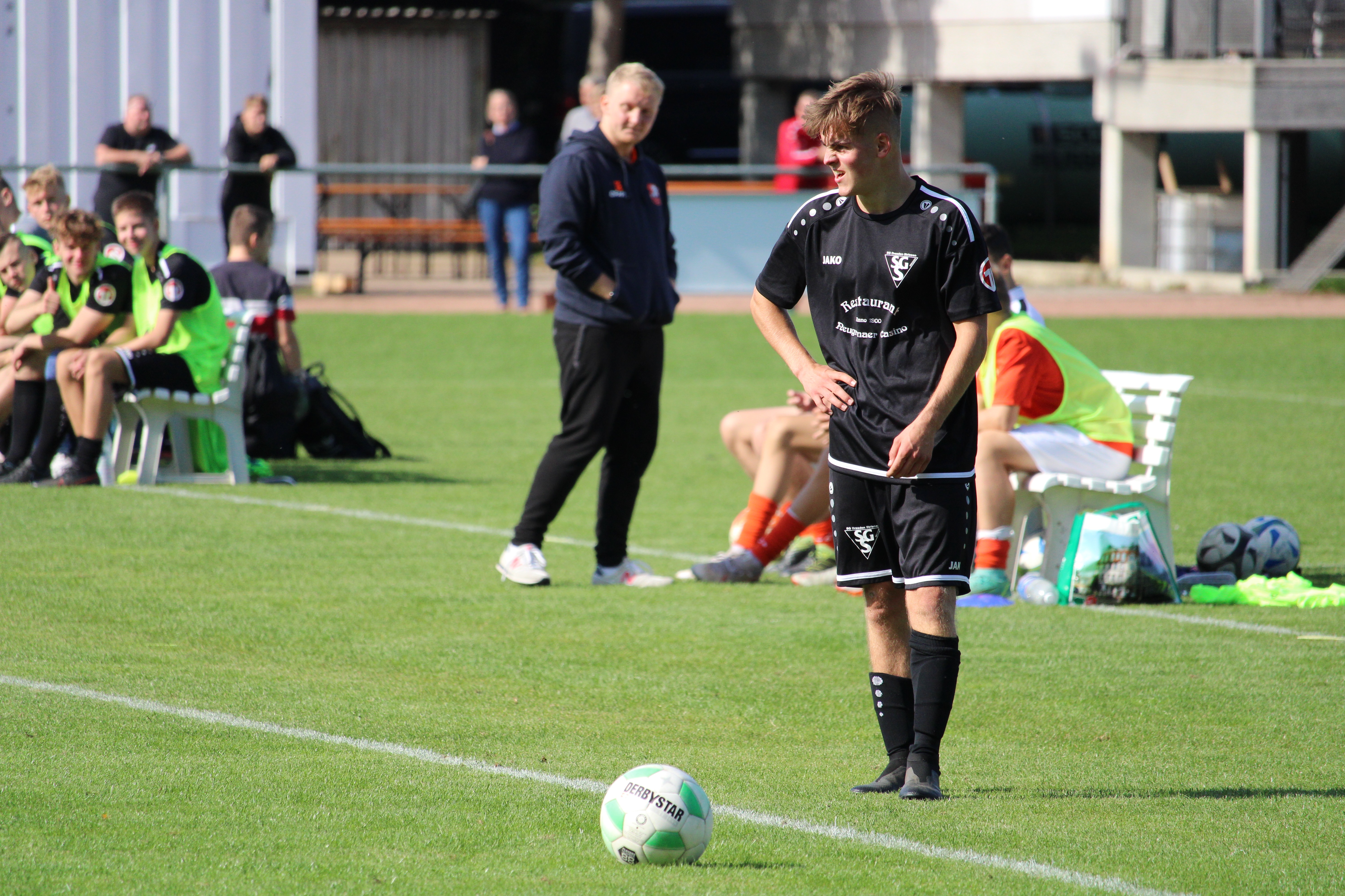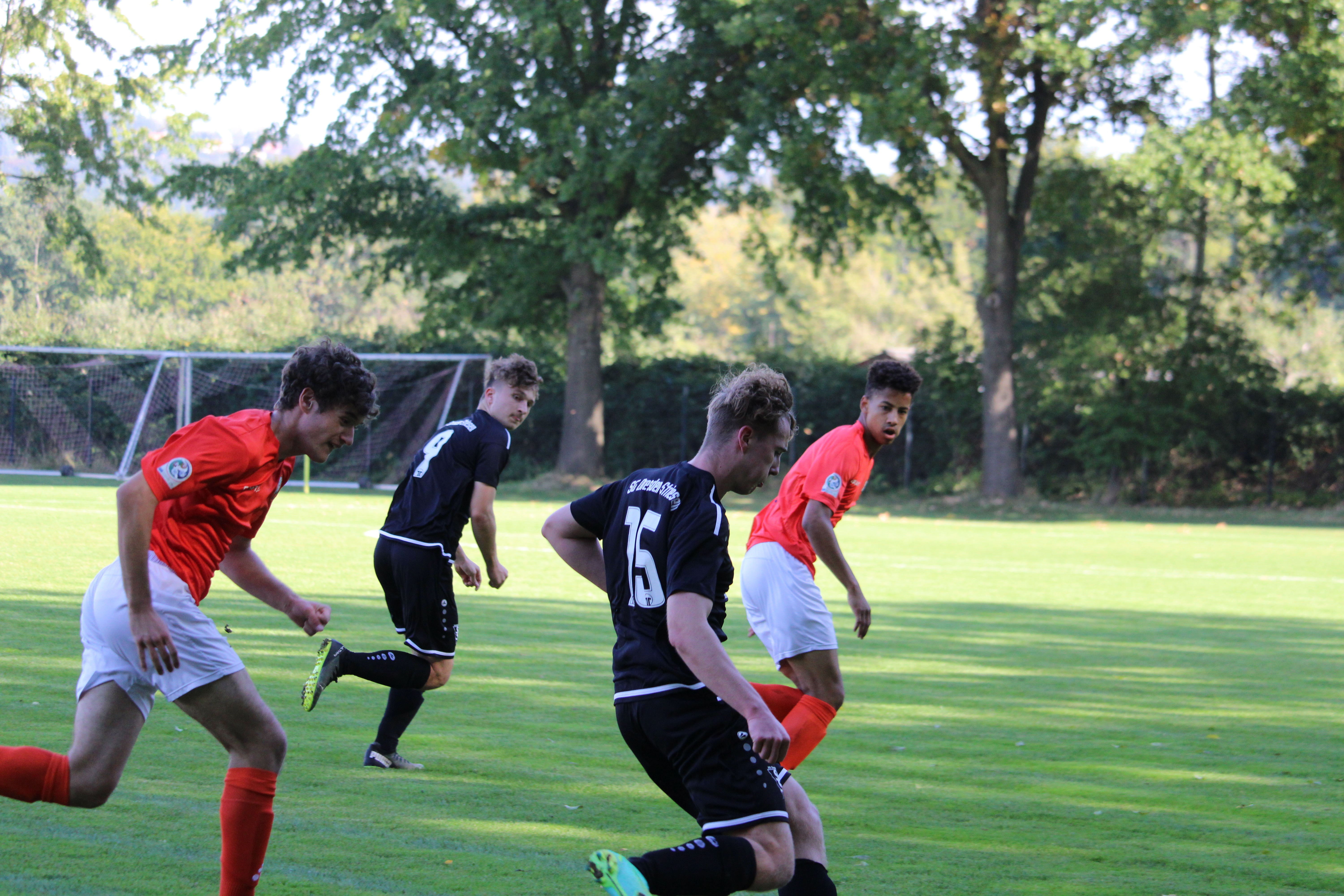 In den Anfangsminuten agierten beide Mannschaften noch etwas verhalten und beschnupperten sich zunächst gegenseitig. Nach zwölf Minuten war die gegenseitige Abtastphase beendet und unseren A-Jugendlichen gelang der Führungstreffer. Einen Fehler im Aufbauspiel der Gäste ausnutzend, konterte man zu zweit in Richtung Tor, wo am Ende Levin Thäsler sicher zum 1:0 vollendete. Mit diesem Treffer war der Bann gebrochen und Striesen nahm das Zepter in die Hand. Daraus resultierend konnte man sich weitere Chancen gute erspielen. Einmal erklang dabei das Geräusch des Aluminiums. Mehr Erfolg hatte man da in der 31. Minute als Thäsler nach einem Angriff über rechts seinen zweiten Treffer folgen ließ. Dabei ließ es unsere U19 bleiben und nach einem herrlichen Steckpass auf Max Seifert, war dieser alleine auf dem Weg in Richtung Tor und versenkte das runde Leder.