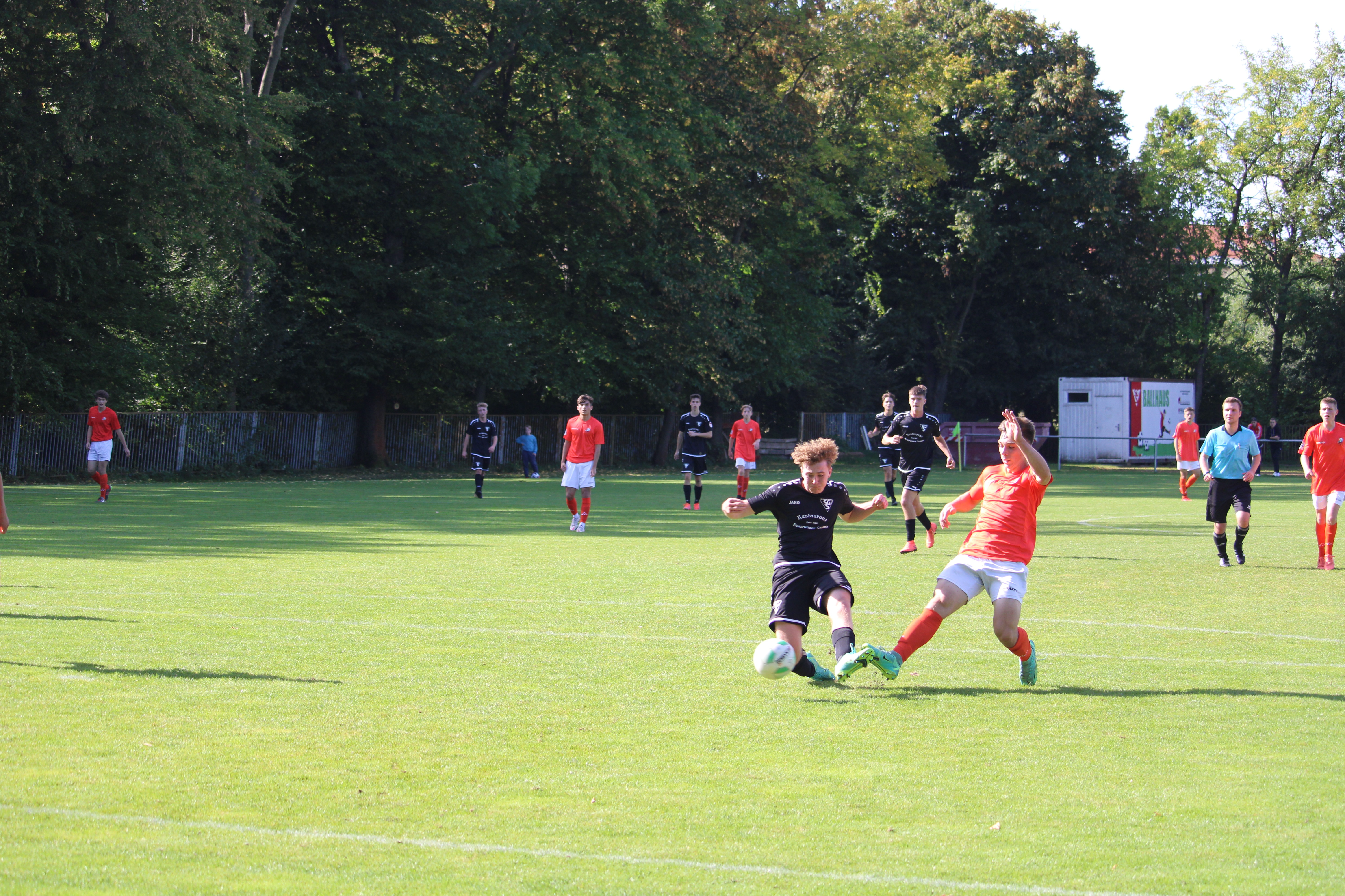 Im zweiten Durchgang konnten unsere A-Jugendlichen weiter an die Leistung anknüpfen. Mit den bisher drei erzielten Treffern zeigte man sich noch nicht zufrieden und versuchte sich weiter gute Chancen zu erspielen. Dies gelang auch und nach 61 Minuten durfte man nach einem Treffer von Arno Stephan ein viertes Mal jubeln. Kurz drauf machte es ein zweites Mal Klong in der Partie, denn erneut wackelte der Gästepfosten. Ein Konter in der 72. Minute sollte dann noch den fünften Treffer bringen. Thäsler wurde kurz hinter Mittellinie auf Reisen geschickt und setzte auch nach einer Reißprobe an seinem Trikot den Weg fort. Nach dem er noch zwei Verteidiger überwinden konnte, beförderte er den Ball ins Netz. In den Schlussminuten nahm die die Dynamik des Spiels ab. Grund war auch eine Verletzung von Keeper Friedrich Fehlhaber, der die letzten Minuten durch einen Feldspieler ersetzt wurde.