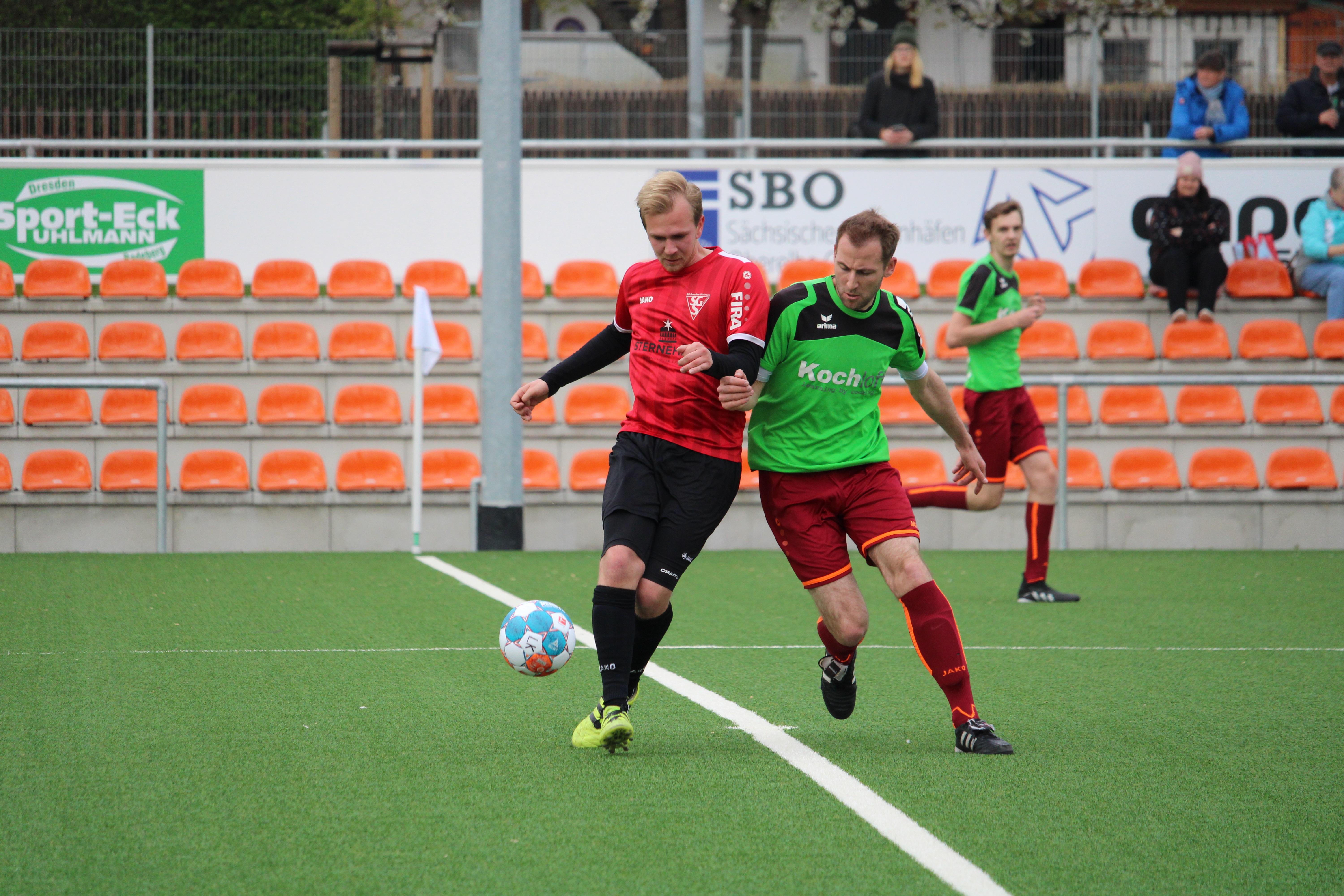 Dabei agierte man sofort sehr agil und drängte sofort nach vorn. Die Hausherren wurden dabei immer weiter in die eigene Hälfte gedrängt und hatten selten Aktionen jenseits der Mittellinie. Die Weichen in Richtung drei Punkten wurden dabei in der elften Minute gelegt. Ahmed Taha Othman traf dabei sehenswert aus knapp 20 Minuten zur Führung. Auch in der Folge blieb man die tonangebende Mannschaft, brachte dabei aber lange den Ball nicht über die Linie und vergab einige gute Möglichkeiten. Eine Einzelaktion über die rechte Seite zum 2:0 von Othman sollte dies ändern (36.). Nun ging es bis zur Pause fast Schlag auf Schlag. Paul Weise mit einem sehenswerten Doppelpack und Dominic Leinhos besorgten bis zum Pausenpfiff einen 5:0-Vorsprung.