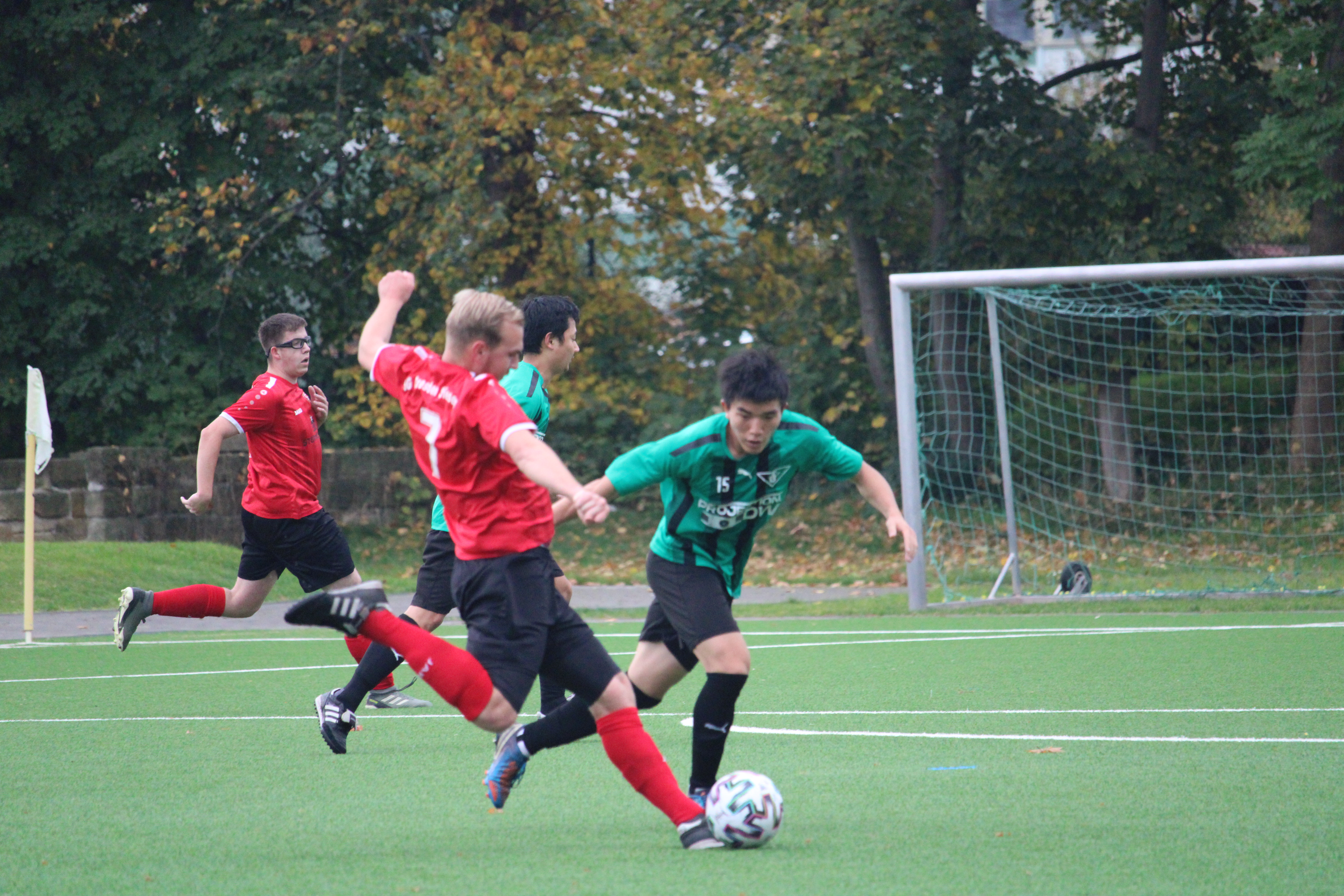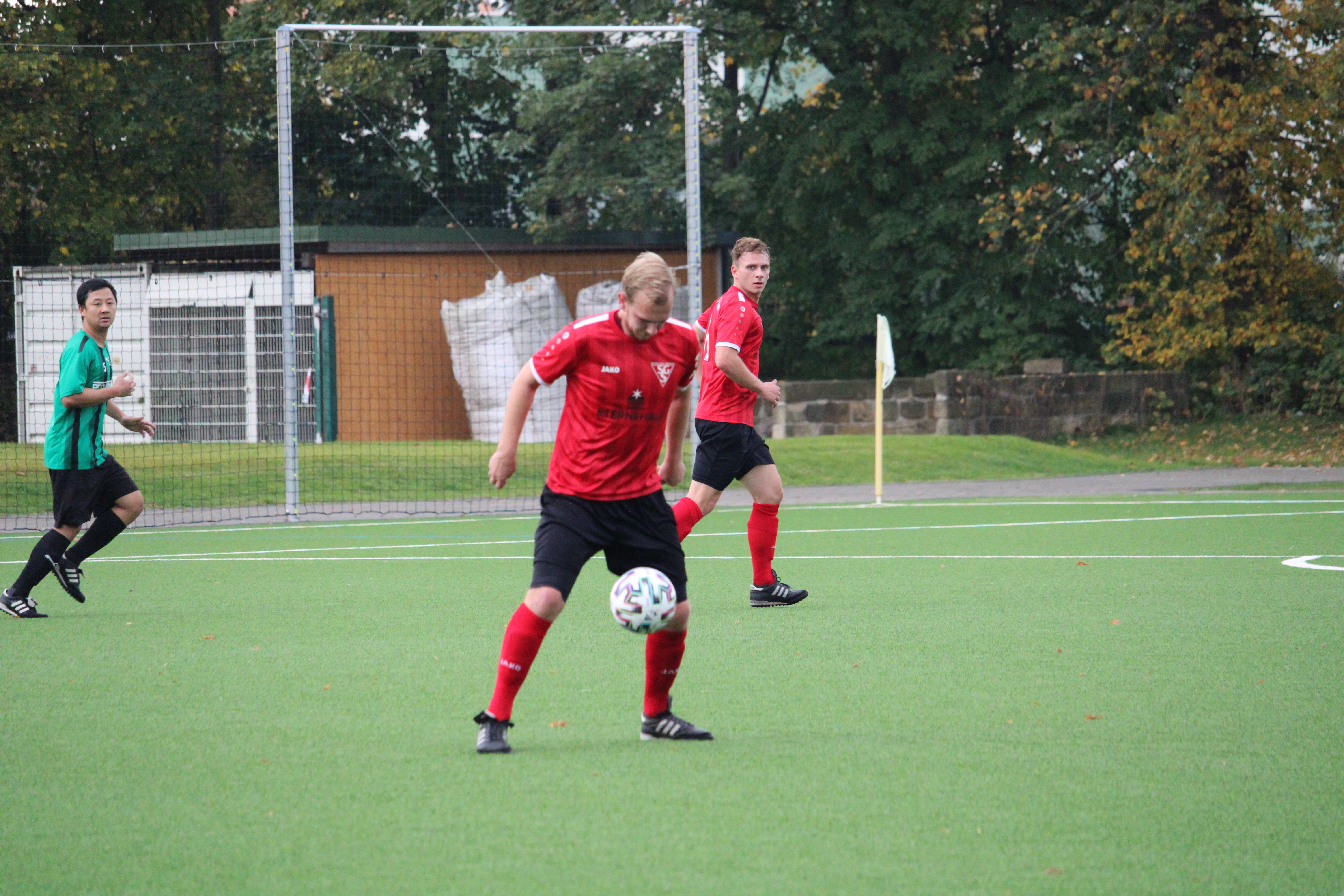 Nach zuletzt zwei Niederlagen am Stück war unsere Dritte gewillt wieder Punkte einzufahren. So ging man die Partie auch mit dem nötigen Ehrgeiz an und konnte nach einer gewissen Abtastphase zum Beginn die Partie sich reißen. Mit zunehmender Spieldauer kam man auch immer mehr zu guten Torchancen. Unter anderem versuchten sich Paul Weise, Tim Przyklenk, Daniel Schneider und William Brüggemann. Doch der Bann sollte erst in der 25. Minute gebrochen werden. Nach einem exzellenten Spielzug über die rechte Seite donnerte Weise den Ball per Flugkopfball in die Maschen. Mit dem Treffer im Rücken spielte es sich noch befreiter und Brüggemann legte nur vier Minuten später den nächsten Treffer nach. Dies sollte aber noch nicht das Ende im ersten Durchgang sein. Da unsere Dritte weiterhin nicht lockerließ, belohnte man sich durch Weise in der 35. Minute mit dem dritten Treffer.