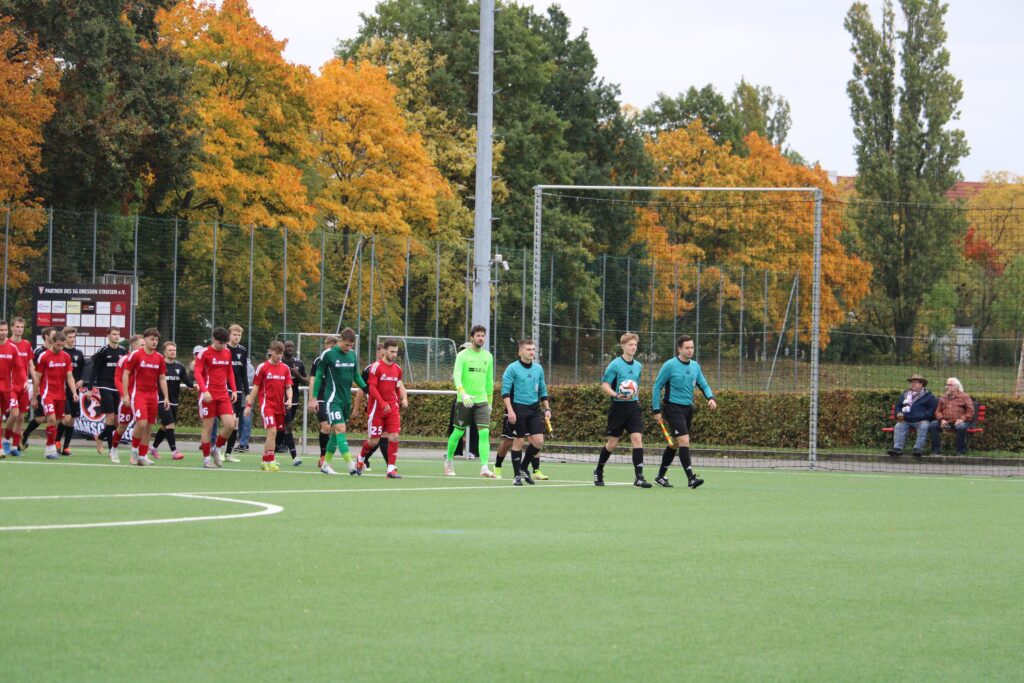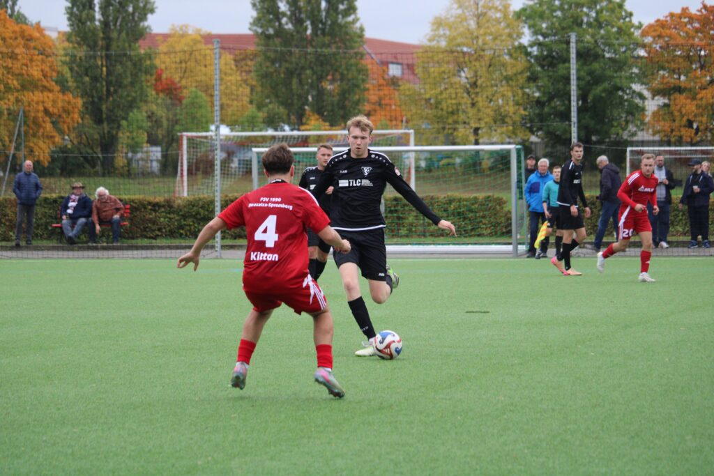Dabei musste man aber zunächst einen Rückschlag hinnehmen. Ein Ballverlust im Mittelfeld sorgte für einen schnellen Gegenstoß und Maximilian Welz war bereits nach vier Minuten überwunden. Aber davon ließ man sich nicht beeindrucken und versuchte direkt die passende Antwort zu finden. Nur zwei Minuten nach dem Rückstand scheitert Eric Zimmermann mit einem Kopfball am Schlussmann. In der elften Minute konnte sich Yannek Wolf über links stark durchsetzen und dem Ball zum am Strafraum wartenden Brais Gonzalez Sousa ablegen, der aber über das Gehäuse zielte. Der Ausgleich sollte aber noch zeitnah gelingen. Ein langer Ball von Gonzalez Sousa findet Drabo, der zum Stelldichein bitte und sich bis zur Grundlinie durchsetzt. Aus spitzem Winkel befördert er schließlich den Ball in die Maschen. Danach gelang es die Oberhand über die Partie zu gewinnen und sich dabei einige Chancen herauszuspielen. Den Anfang machte Zimmermann der von Lorenz Thomas ein starken Steckpass erhielt, aber im letzten Moment abgeblockt wurde (25.). Wenig später war es erneut Zimmermann. Diesmal nach einer Ecke freistehend per Kopf (29.). Einen Augenblick später versuchte sich Tim Schröter aus der Ferner. Sein abgefälschter Schuss stellt den Gästekeeper vor Probleme. Die wohl beste Chance besaß Phillip Schweizer in der 36. Minute. Nach seiner Balleroberung dribbelte er bis zum Strafraum, wo er auch zum Abschluss kam und den Pfosten traf. Fast im Gegenzug dann Neusalza-Spremberg. Ein schnell vorgetragener Angriff beförderte sie in den Strafraum, wo Maximilian Welz schlussendlich einen Einschlag verhinderte. Kurz vor der Pause scheiterte auch Thomas noch am Schlussmann der Gäste.