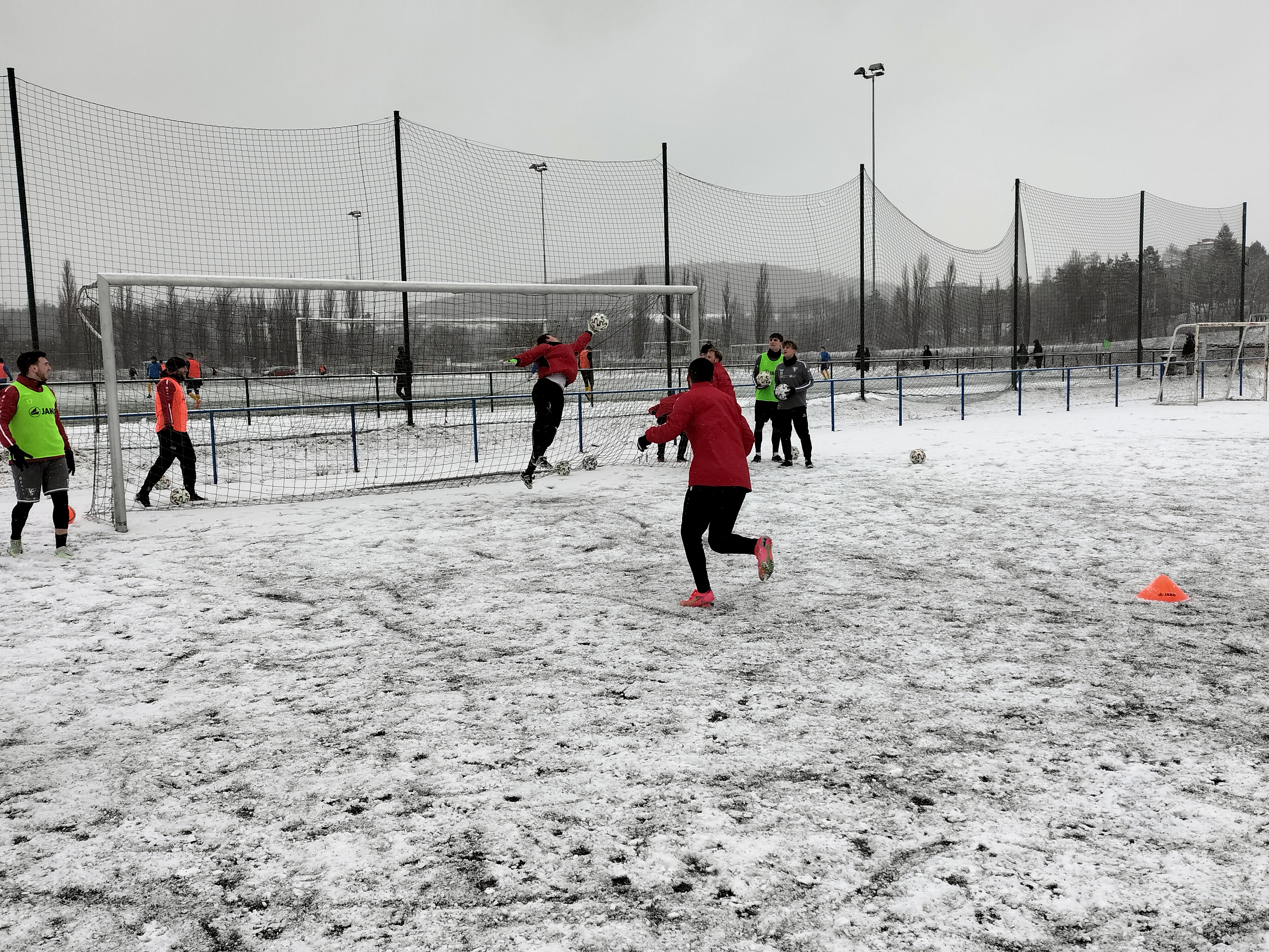 Am vergangenen Wochenende weilte unsere Erste zum Trainingslager im tschechischen Pilsen und stimmte sich gemeinsam auf die kommende Rückrunde ein. Trotz der winterlichen Verhältnisse gab es von Freitag bis Sonntag vier intensive Einheiten auf schneebedeckten Kunstrasen und Jogging durch die tschechische Großstadt. Doch es wurde nicht nur kräftig trainiert, sondern auch der gemeinschaftliche Zusammenhalt kam nicht zu kurz. Zwar liegen drei anstrengende Tage hinter der Mannschaft, doch nach diesem Trainingslager geht man voller Tatendrang die Rückrunde der Landesliga an.