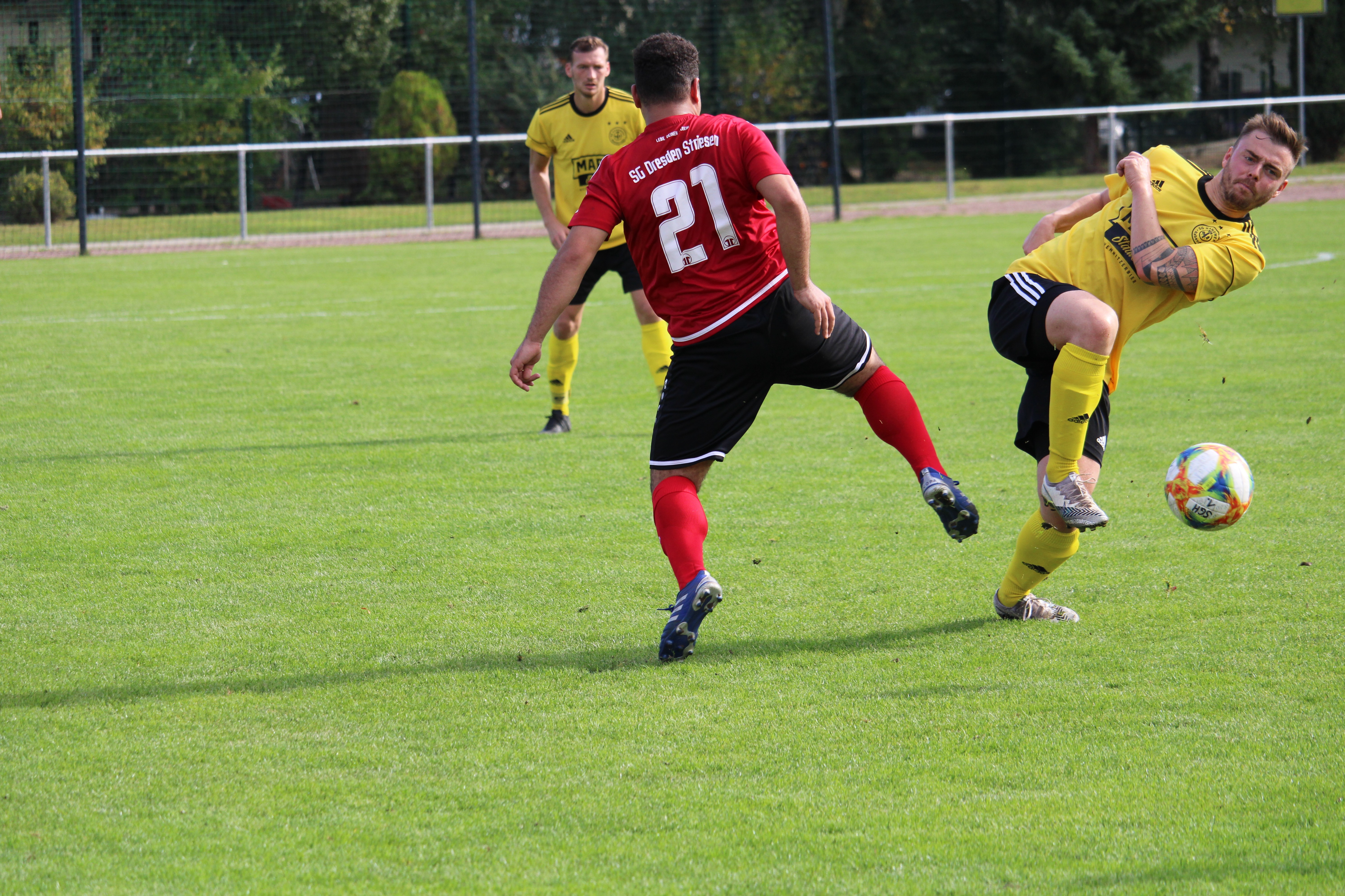 Nach einem kurzen Abwarten übernahm in der Anfangsphase Rabenstein das Spielgeschehen. In der fünften Minute sorgte eine Ecke der Hausherren auf den kurzen Pfosten für erste Gefahr im Spiel. Grundlegend agierte unsere Verteidigung umsichtig und konnte die Angriffsversuche der Hausherren abfangen. Einzig ein Konter in der 18. Minute konnte nicht verteidigt werden. Willi Mogel ging nach einem Angriff unserer Mannen kurz vor dem Strafraum bei einem Angriff zu Boden. Während die Unseren mit einem Pfiff rechneten, machten sich die Rabensteiner auf in Richtung Gehäuse von Christian Kunath. Über zwei Stationen fand dieser Angriff schließlich den Weg ins Tor. Nun war es an Striesen die richtige Antwort zu finden. Doch zunächst spielten die Hausherren mit der Führung im Rücken weiter nach vorn und prüften mit einer direkt getretenen Ecke Kunath im Tor. Mitte der Hälfte neigte sich das Spiel dann in Richtung unserer Ersten. In der 26. Minute brachte Talab Al-Abdullah eine Ecke in den Strafraum, welche noch geklärt werden konnte. Marcel Arnold landete der Ball vor den Füßen, was dieser zum Ausgleich ausnutzte. Nun wechselten sich beide Mannschaften in der Offensive ab. Zunächst hatte Rabenstein nach einem Eckstoß und einem Konter zwei Möglichkeiten (29. + 32.). Anschießend war Mogel nach einem weiten Einwurf mit dem Kopf zur Stelle (35.).