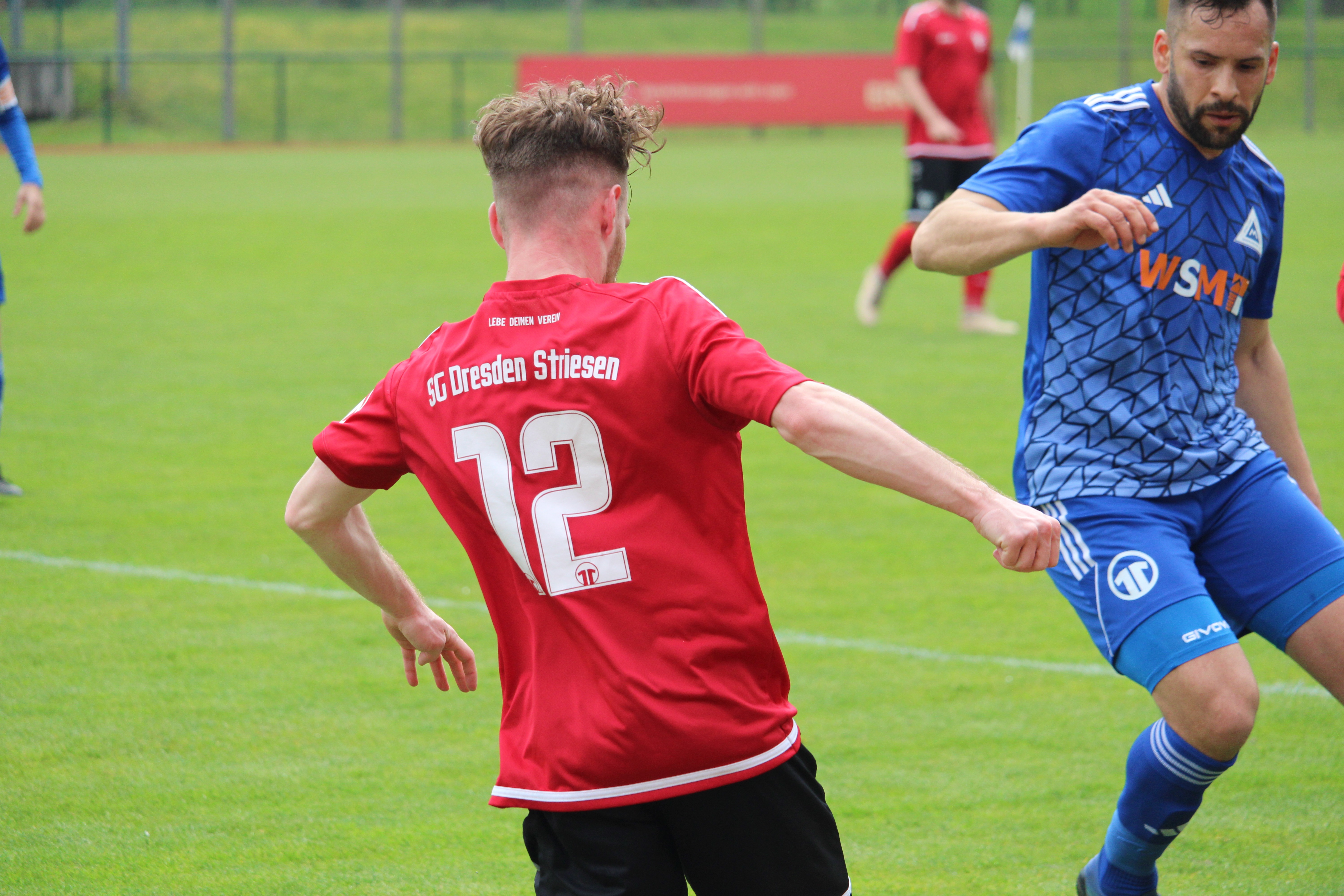 Gegen den Dritten der Landesliga, welcher den Weg in die Oberliga anstrebt, waren die Rollen klar verteilt und so sahen auch die Ballbesitzverhältnisse aus. Über die gesamte Spieldauer konnten die Hausherren zu sehr großen Anteilen das Spielgerät ihr Eigen nennen. Unsere Mannen agierten aus einer sehr gut gestaffelten Verteidigung heraus und versuchten den Markranstädtern das Leben so schwer wie möglich zu machen. Immer wieder versuchten diese den Striesener Abwehrriegel zu durchbrechen, doch mit viel Leidenschaft und energischem Zweikampfverhalten gelang es die Angriffsbemühungen der Gastgeber weitestgehend zu unterbinden. So konnte Markranstädt zwar große Feldvorteile für sich verbuchen, aber nur selten für Torgefahr sorgen. So waren es im ersten Durchgang nur drei Abschlüsse, die Erwähnung finden sollten. Die erste Möglichkeit besaßen die Hausherren in der neunten Minute, als sich eine verunglückte Hereingabe gefährlich in Richtung langes Eck bewegte und nur knapp am Tor vorbeiflog. Mitte der ersten Halbzeit war es dann ein Freistoß, den Niko Karger artistisch abwehren konnte. Im Anschluss musste Karger nach einer Markranstädter Kombination nochmal eingreifen.