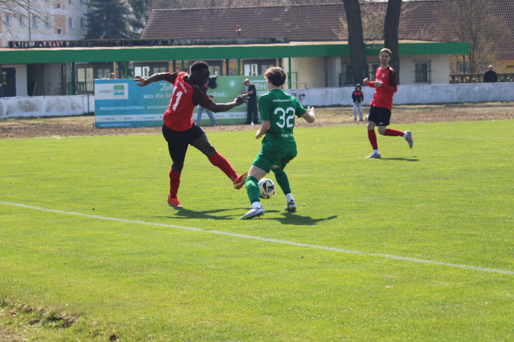 In der zweiten Hälfte brauchten unsere Mannen etwas, um wieder in das eigene Spiel zu finden, was auch an druckvolleren Hausherren lag, die sich immer öfter in die Offensive wagten. Aber unsere Verteidigung hielt auch hier Stand und bis auf zwei kleinere Chancen, gab es keine großen Problem. Nach einer guten Stunde fanden unsere Mannen wieder in die Spur der ersten Hälfte und belohnten sich dabei mit dem zweiten Treffer. Ein Freistoß von Leo Leichsenring fand unter gütlicher Mithilfe der Latte und dem Rücken des Keepers den Weg in die Maschen (63.). Neun Minuten später legte man sogar noch einen weiteren Treffer nach. Ein langer Ball von Zimmermann fand den durchstartenden Schweizer, der den Ball ins Gehäuse beförderte. Bei einer anschließenden Rudelbildung dezimierten sich die Hausherren durch eine Unbeherrschtheit und unsere Mannen bestritten die Partie in Überzahl weiter. Jedoch war auf Grund des Spielstandes in der Schlussviertelstunde die Luft ein wenig raus und unsere Mannen brachten das Ergebnis souverän ins Ziel, auch wenn beide Mannschaften noch zwei Abschlüsse in ihre Statistik schreiben konnten.