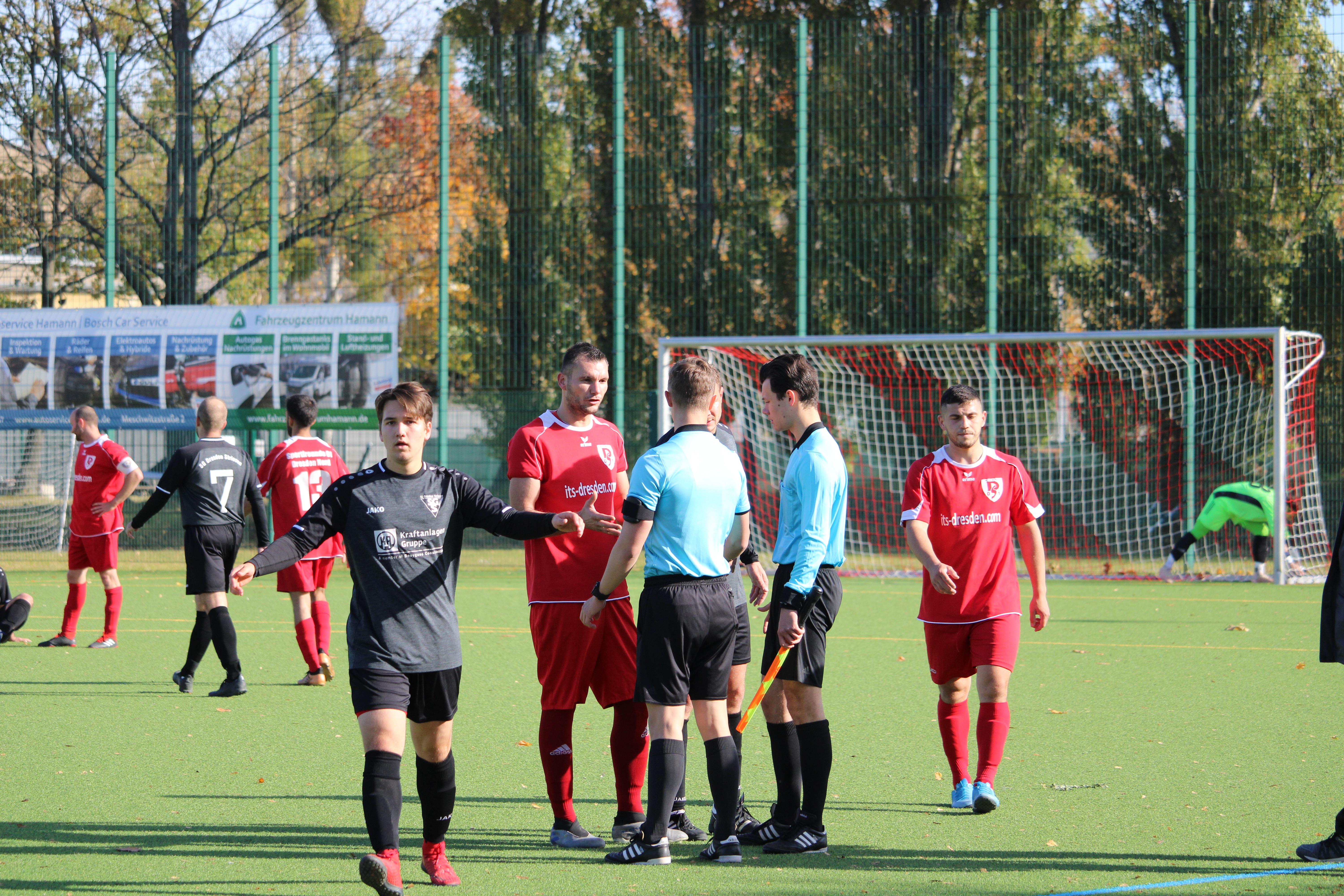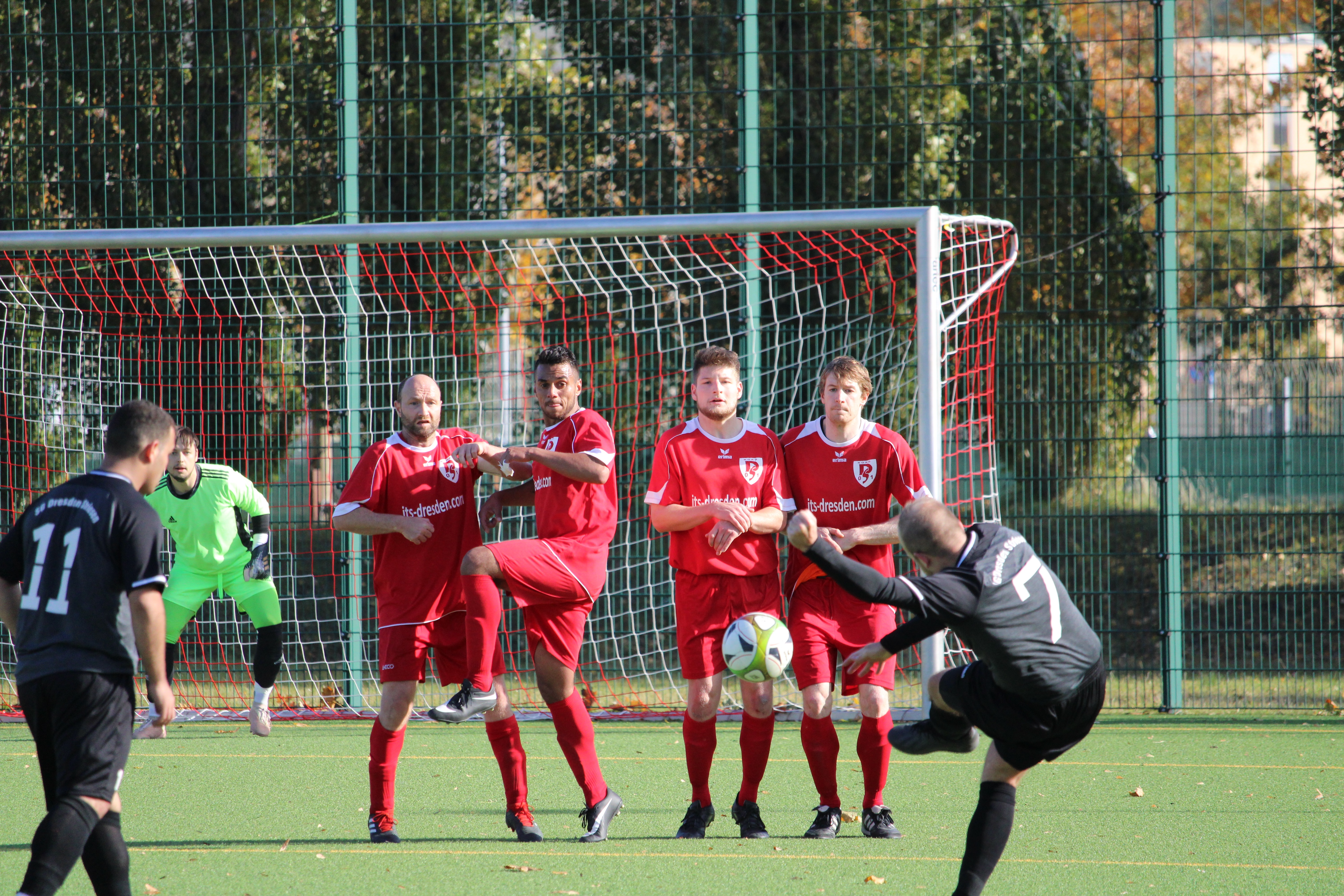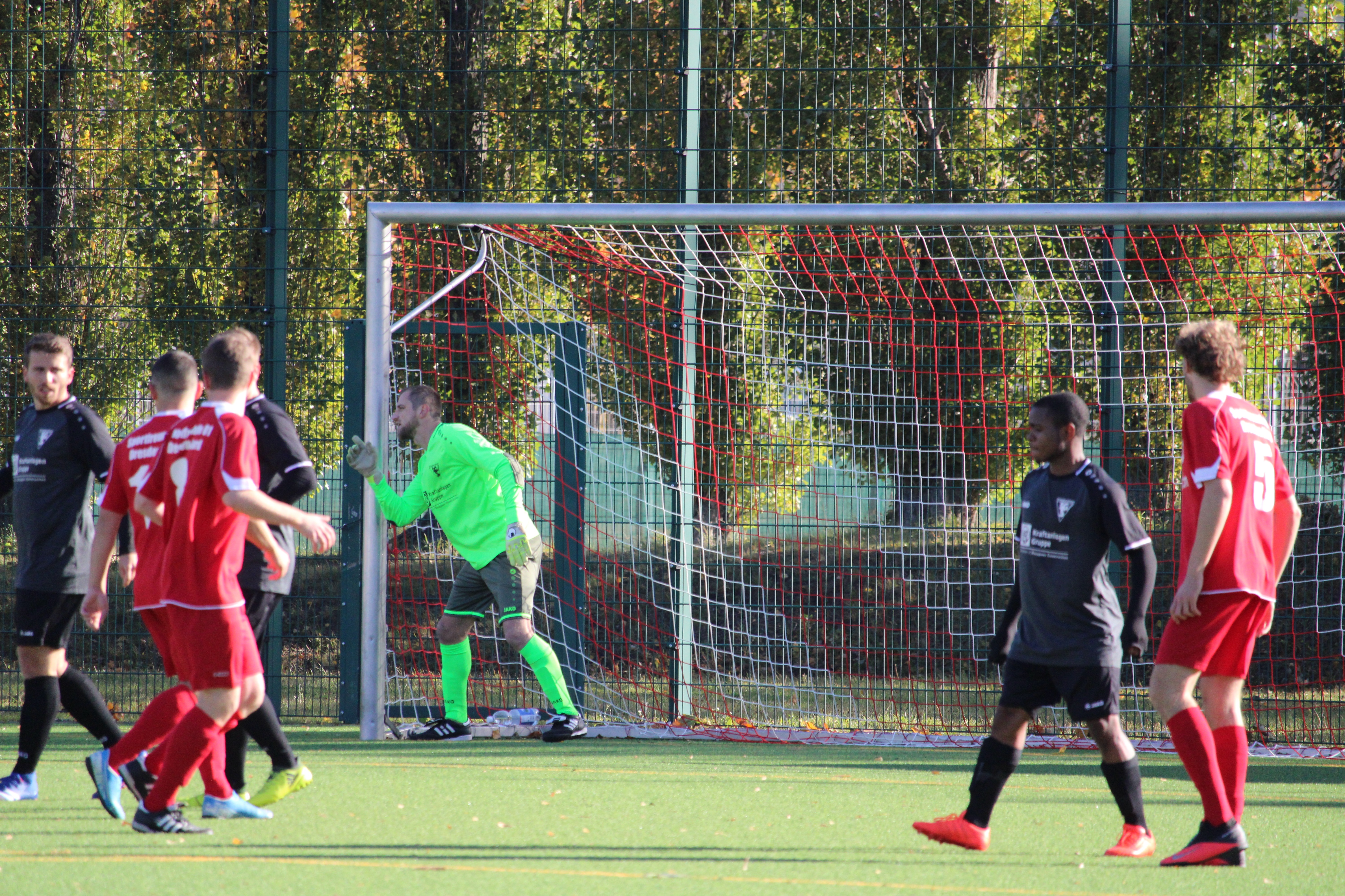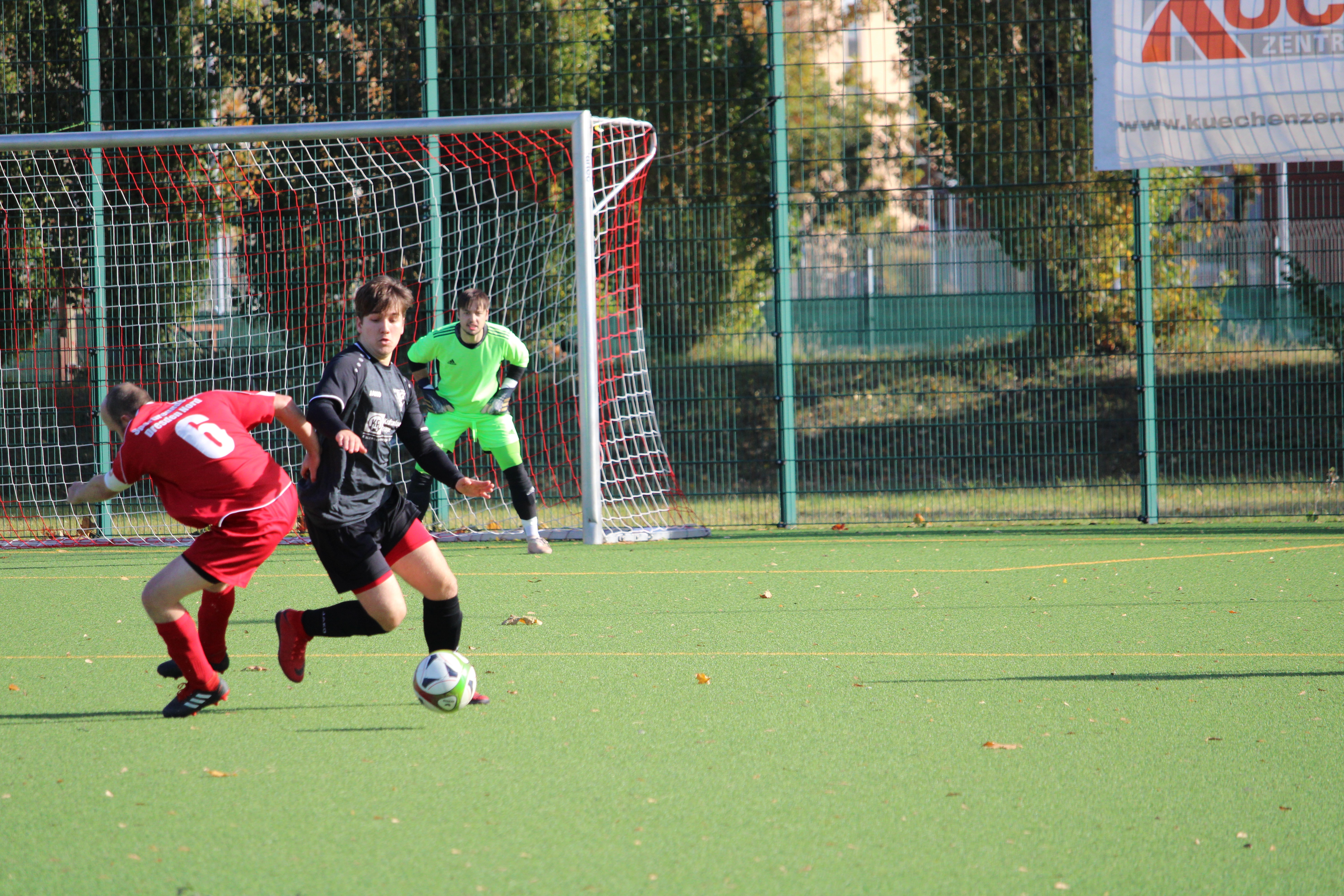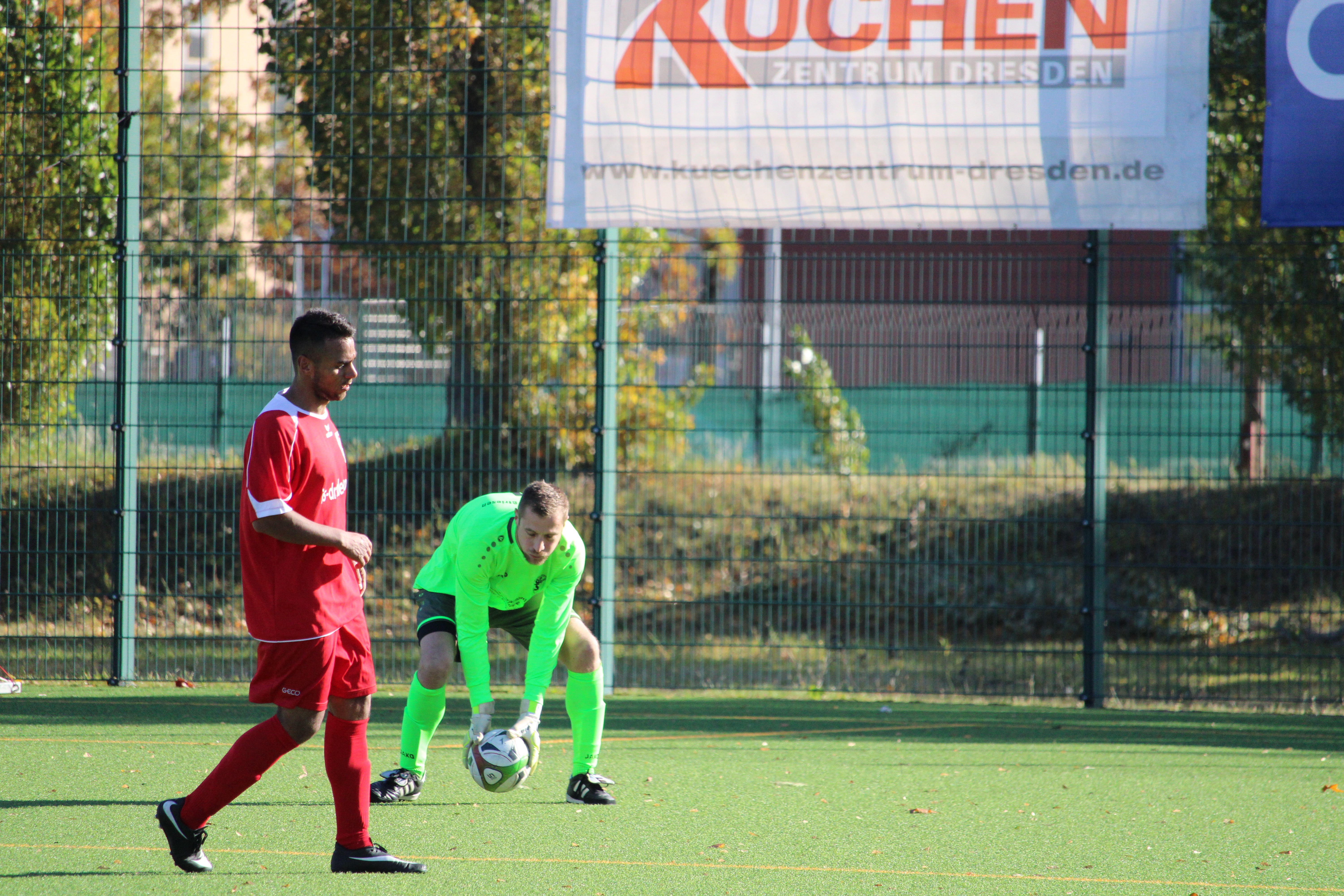 In dieser Partie gab es keine lange Abtastphase und beide Mannschaften waren sofort auf Betriebstemperatur. Dabei erwischte Striesen zunächst den besseren Start. Gerade einmal zwei Minuten waren gespielt, als der Ball zum ersten Mal die Torlinie überschritt. Talab Al-Abdullah war der erste Torschütze. Die Hausherren ließen sich davon nicht abschrecken und hatten noch in der zehnten Minute die passende Antwort parat. Ein perfekt getretener Freistoß aus knapp 25 Metern fand direkt den Weg in das obere Toreck. Selbst die sehenswerte Flugeinlage von Jens Ballin konnte den Einschlag nicht verhindern. Im Anschluss entwickelte sich eine offene Partie, bei der beide Mannschaften keinen Zentimeter preis gaben. Dabei sollte es im ersten Durchgang noch einmal im Tor einschlagen. Jedoch auf der falschen Seite. Nach einer halben Stunde Spielzeit trafen die Hausherren zum 2:1. Mit diesem Spielstand ging es auch in die Kabinen.