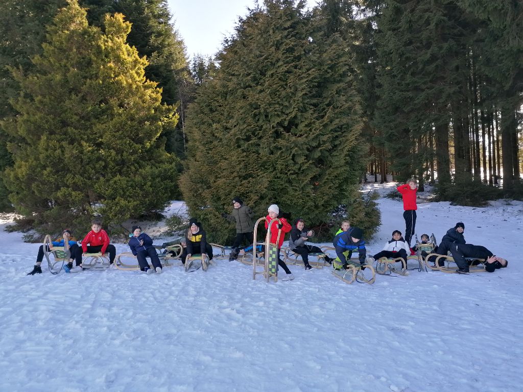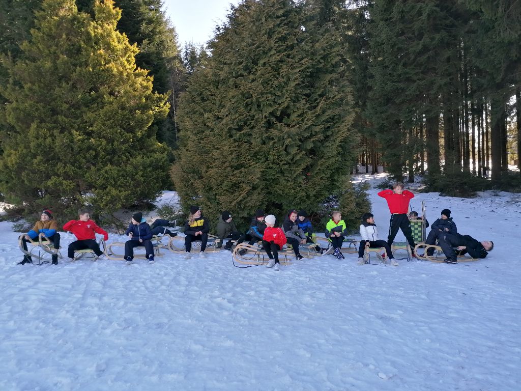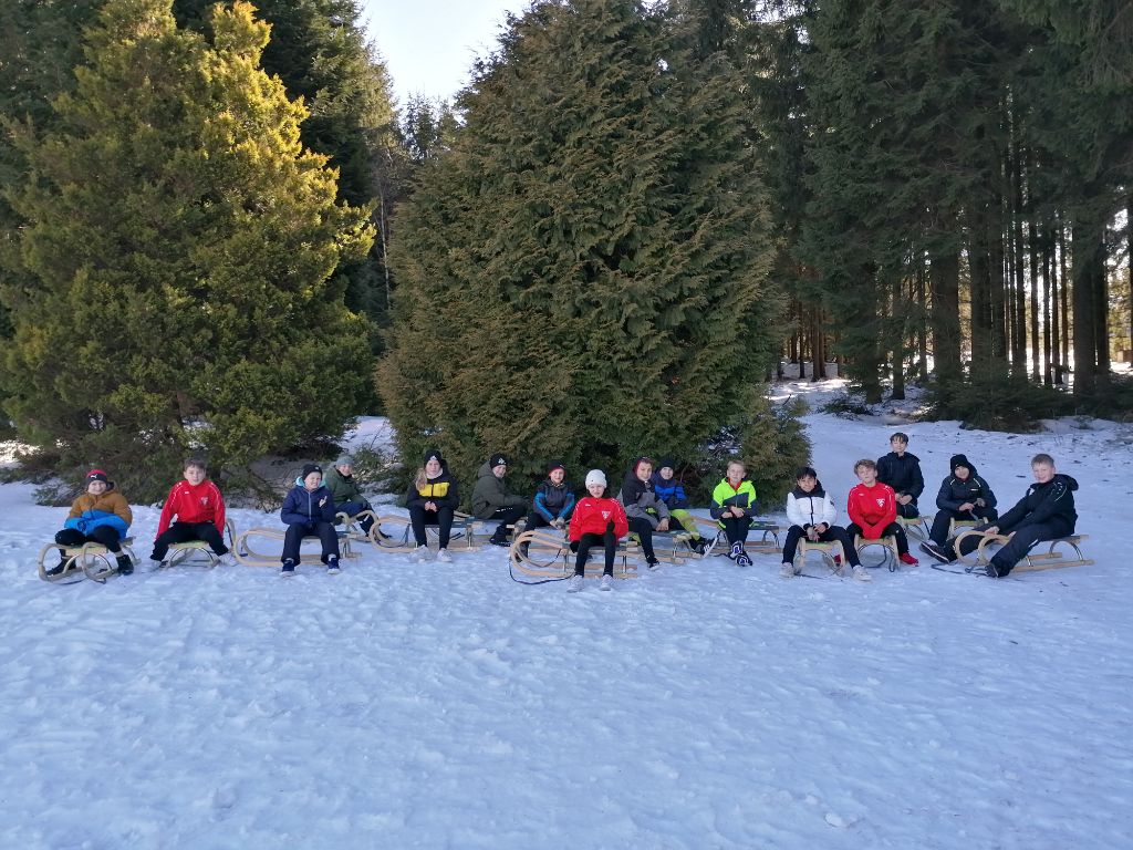 Am Tag darauf ging es ebenfalls wieder in den Schnee. „Kampfrodeln“ stand auf dem Plan. Durch diese Form brachten die Trainer den Wettbewerbsgedanken aus dem Fußball zum Rodeln hinüber. Nach jeder Runde schied der Letzte im Ziel aus, was einen hohen Ehrgeiz und vor allem Spaß bei den Jungs und Mädels auslöste.