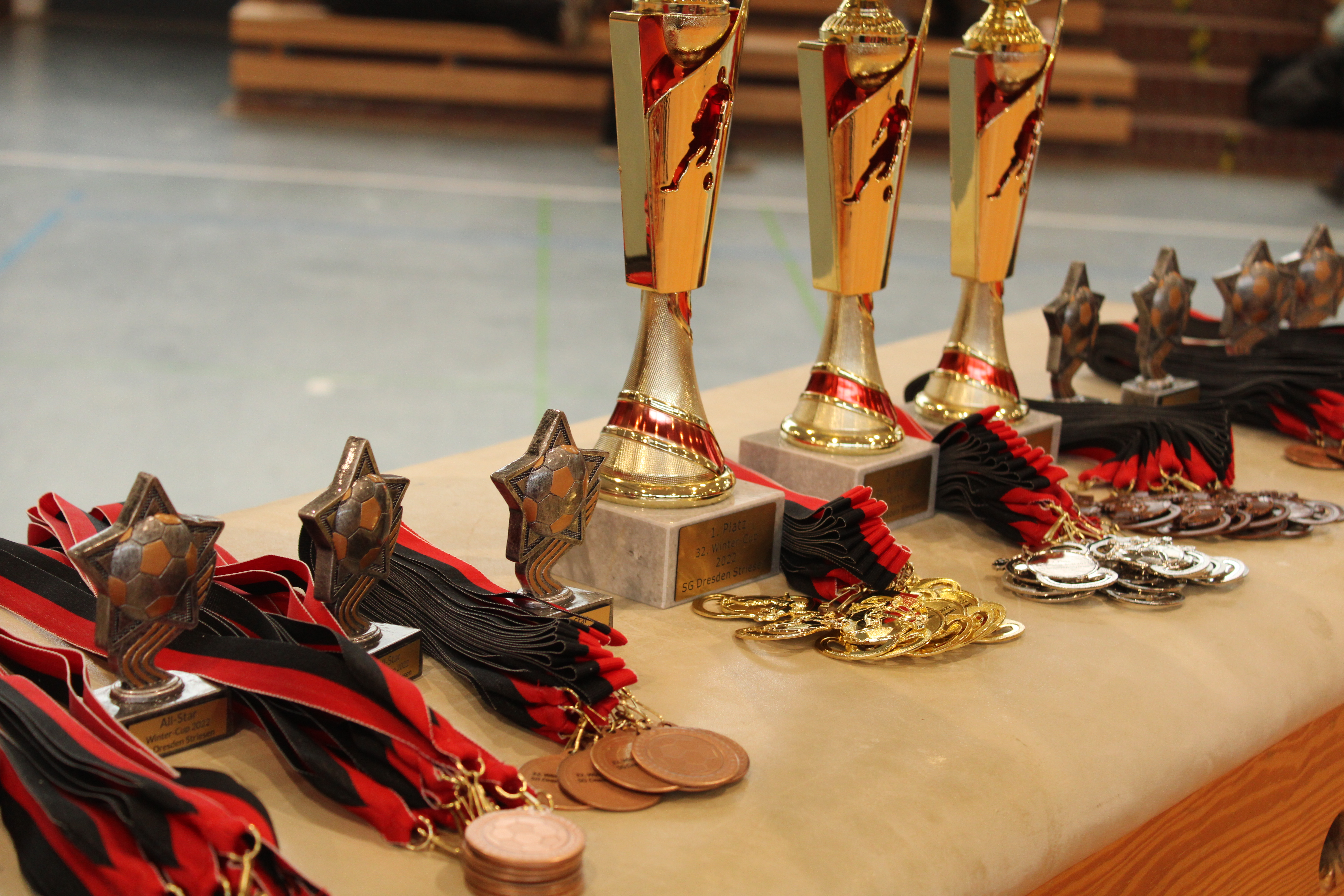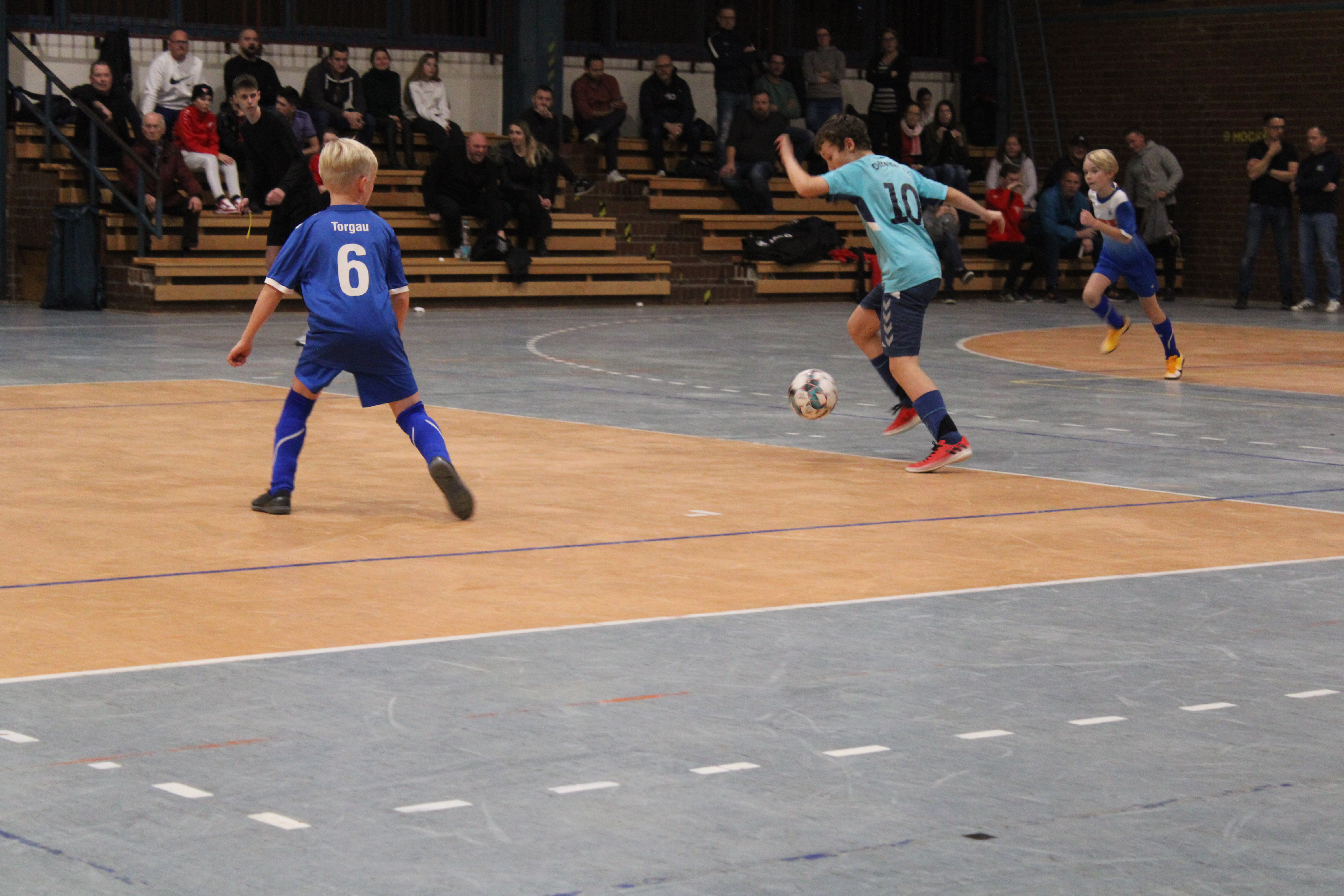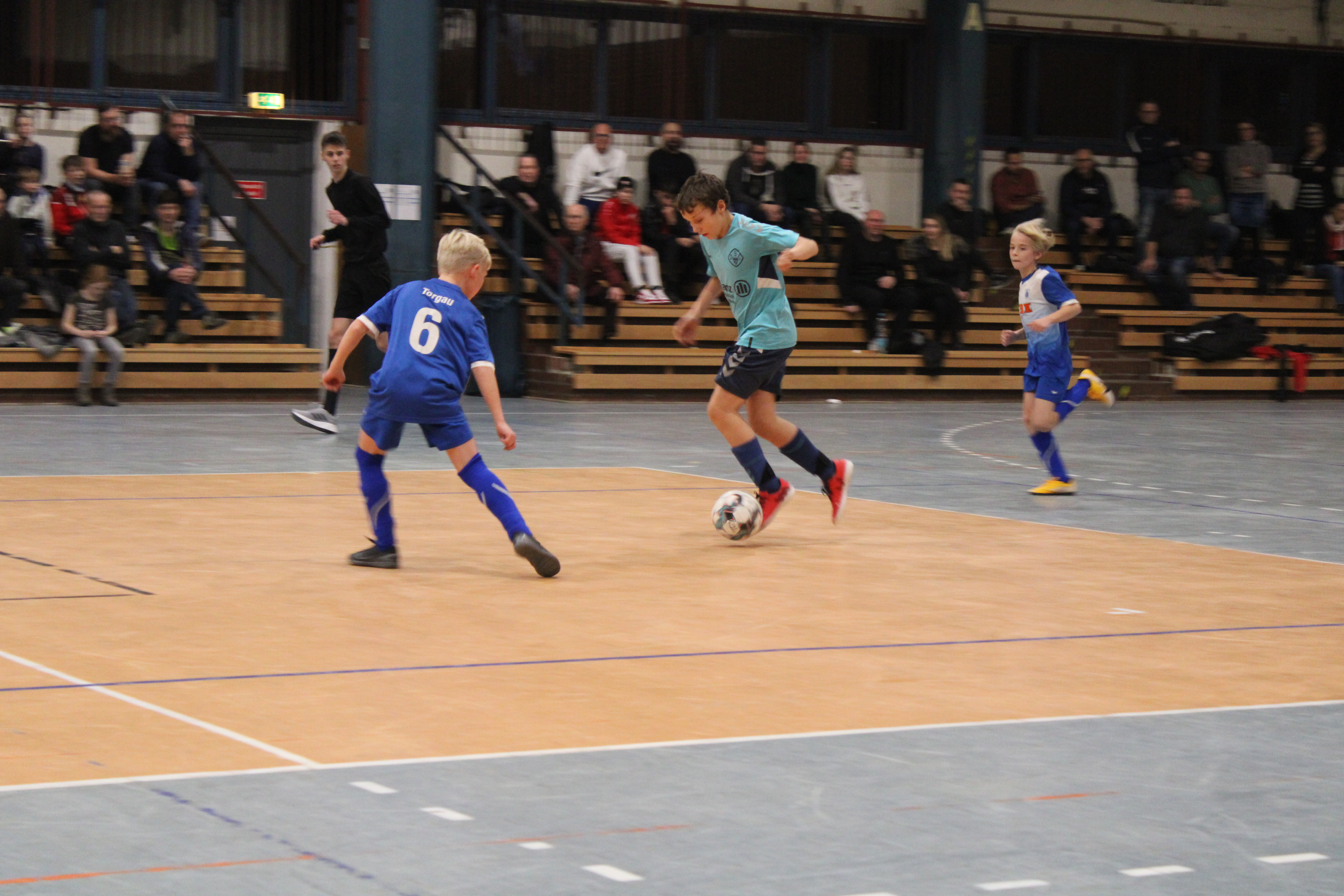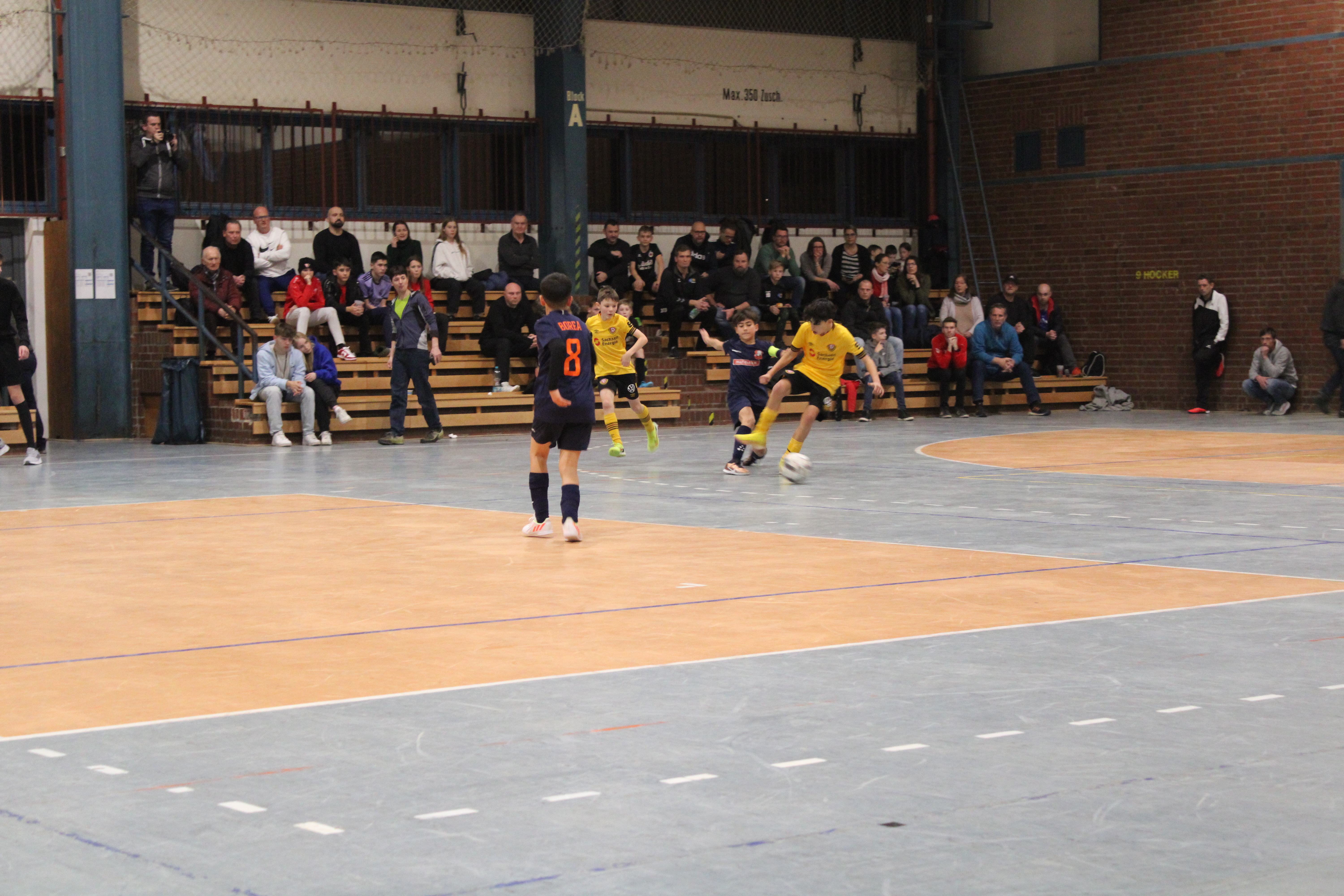 Zum Tagesabschluss traten dann die größten des Kleinfelds aufs Hallenparkett. Die U13 war am Ball. In einem bunten Teilnehmerfeld hießen die Halbfinalteilnehmer SC Borea Dresden, Rotation Leipzig, SC Staaken und SG Weixdorf. Als die zwei Besten kristallisierten sich dabei der SC Borea und der SC Staaken heraus, die mit 2:1 bzw. 3:0 gewannen. Im Finale setzte sich die bis dato treffsicherste Mannschaft durch und stellte auch im Endspiel seine Torgefährlichkeit unter Beweis. Ein starkes 4:0 stand schließlich für den SC Borea Dresden zu Buche. Bronze sicherte sich nach Siebenmeterschießen Rotation Leipzig.