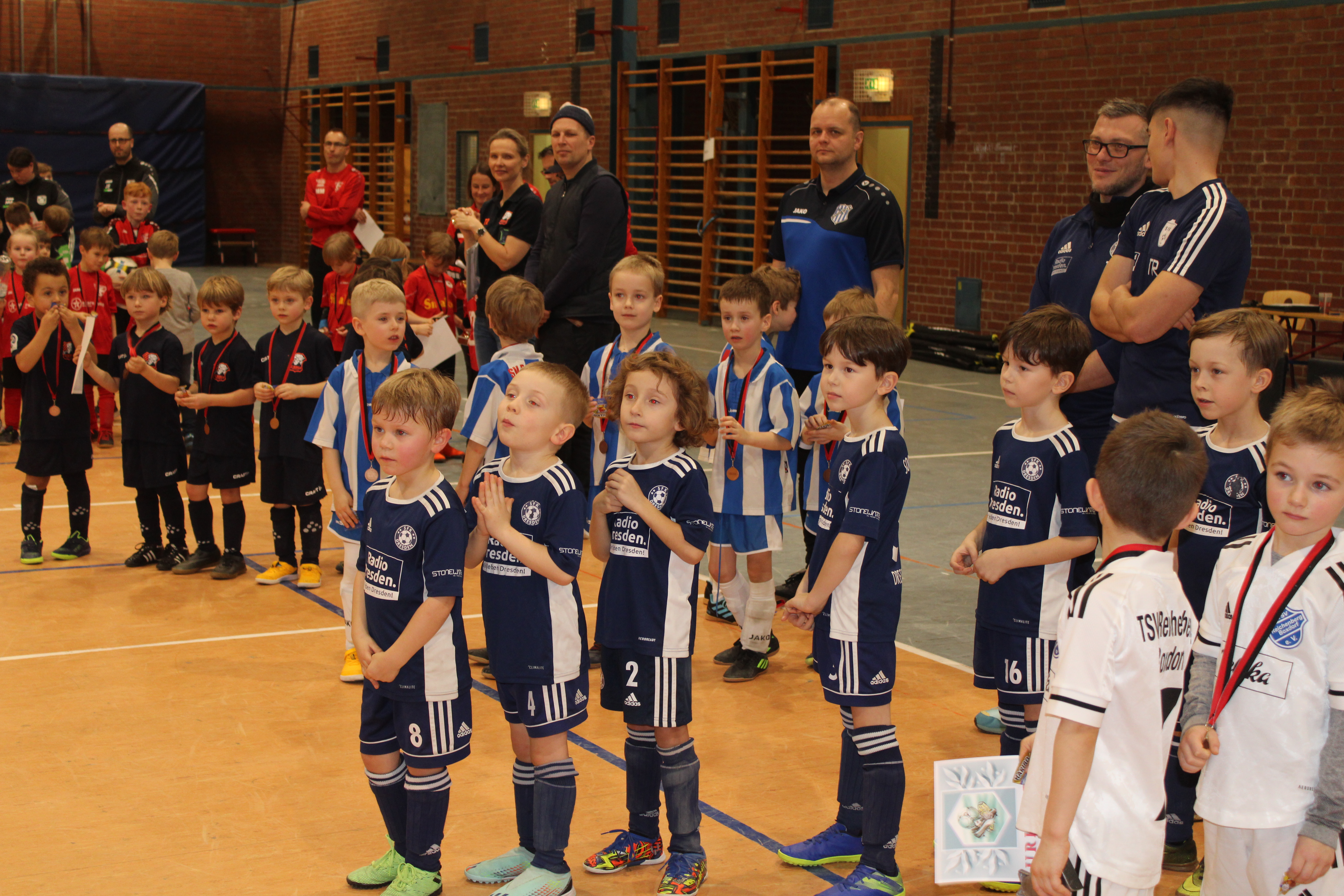 Den Anfang des Turnierreigens machten dabei die U8-Junioren. Bei einem Teilnehmerfeld mit Mannschaften aus Sachsen-Anhalt und Brandenburg konnten sich am Ende der Vorrunde die Dresdner Teilnehmer für die Halbfinals qualifizieren. Dort entwickelten sich zwei enge Partien, bei denen schlussendlich ein Tor über Sieg oder Niederlage entscheiden sollte. Im Endspiel hieß es dann SG Dresden Striesen gegen den SC Borea Dresden. Und auch in diesem Spiel sollte es nur einen Treffer geben, der zugunsten der Gastgeber fiel. Im Spiel um Platz 3 konnte sich Soccer for Kids nach Siebenmeterschießen gegen den Dresdner SC durchsetzen.