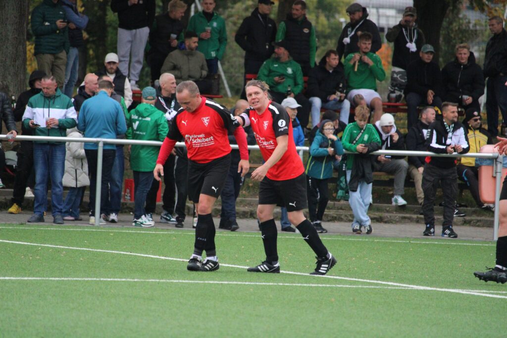 Auch im zweiten Durchgang wurde den Anwesenden eine kurzweilige Partie geboten, bei der unsere Mannen gewillt waren den Rückstand wieder aufzuholen. Dies sollte auch gelingen. So nutzte Tom Lindner einen Fehler der Leubener Hintermannschaft und verkürzte den Rückstand (58.). Nur wenige Zeigerumdrehungen später war es Maik Winkelmann, der per direktem Freistoß den Ausgleich erzielte. Nun war die Partie wieder offen und unsere Dritte war nun gut im Fahrwasser. Dies führte auch zur Führung in der 68. Minute. Erneut was es Winkelmann. Diesmal aber vom Punkt. Doch ein erneuter Standard sollte nur vier Minuten später den Ausgleich bringen. So war stand es mittlerweile 5:5 und beide Mannschaften alles in die Waagschale warfen, um das Spiel zu ihren Gunsten zu entscheiden. Bis kurz vor Schluss sah es auch so aus, als würde die Partie noch 30 Extraminuten bekommen. Am Ende war es aber noch ein Freistoß, der das Aus unserer Dritten besiegelte (90.).