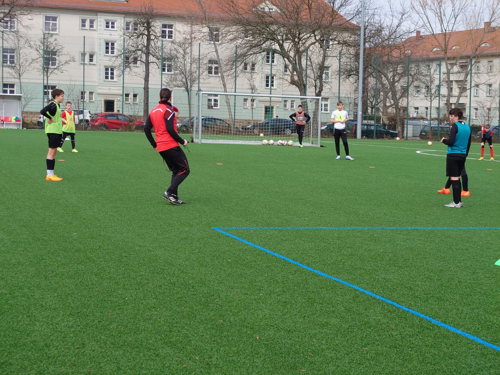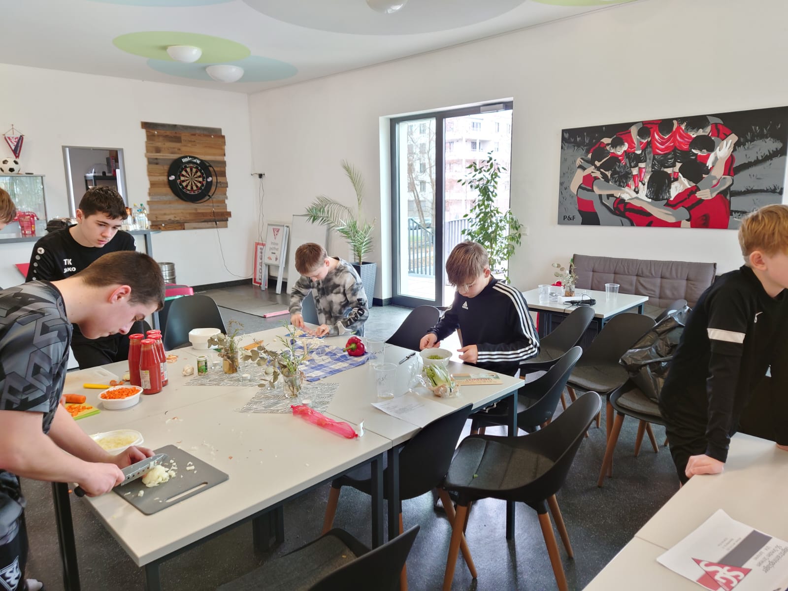 Am 22.02. bestellte U14-Trainer Tim Rose seine Mannschaft auf die Bärensteiner Straße zum Tagestrainingslager, zur Vorbereitung auf die restliche Saison. Nach einer kurzen Vorstellung des Tagesplans ging es direkt in die erste Trainingseinheit des Tages. Bei der Einheit lag der Schwerpunkt auf gruppentaktischen Inhalten. Nach der Trainingseinheit hatten alle eine kurze Pause und bereiteten den nächsten Höhepunkt des Tages vor. Nun hieß es Hände waschen und Zwiebeln schälen. Die Mannschaft kochte in den nächsten zwei Stunden gemeinsam eine Bolognese und Chili con Carne. Sie teilten sich Aufgaben zu und arbeiteten als Mannschaft gemeinsam für ein gutes Ergebnis. Anschließend saßen alle zusammen und ließen sich ihre Kreationen schmecken. Natürlich kochten die Spieler nicht nur gemeinsam sondern beseitigten auch zusammen die Unordnung, die entstanden ist. Zwischendurch konnten sich Spieler und Trainer auch mal an der Karaoke-Box ausprobieren, was für ausreichend Belustigung sorgte. Nach ausreichender Pause ging es zur zweiten Trainingseinheit auf den Platz. Bei dieser standen nunmehr mannschaftstaktische Inhalte auf dem Programm. Auch bei dieser Einheit haben die Spieler der U14 gut mitgearbeitet. Der Abschluss des Tages lag in einer gemeinsamen Auswertung, in der gemeinsam über positive und negative Aspekte sowie Erkenntnisse gesprochen wurde. Ein kurzweiliger Tag voller Eindrücke ging mit vielen zufrieden Gesichtern zu Ende. Das Trainerteam ist stolz auf die erbrachte Leistung ihrer Mannschaft, sowohl in den Trainingseinheit als auch beim Kochen als Team!