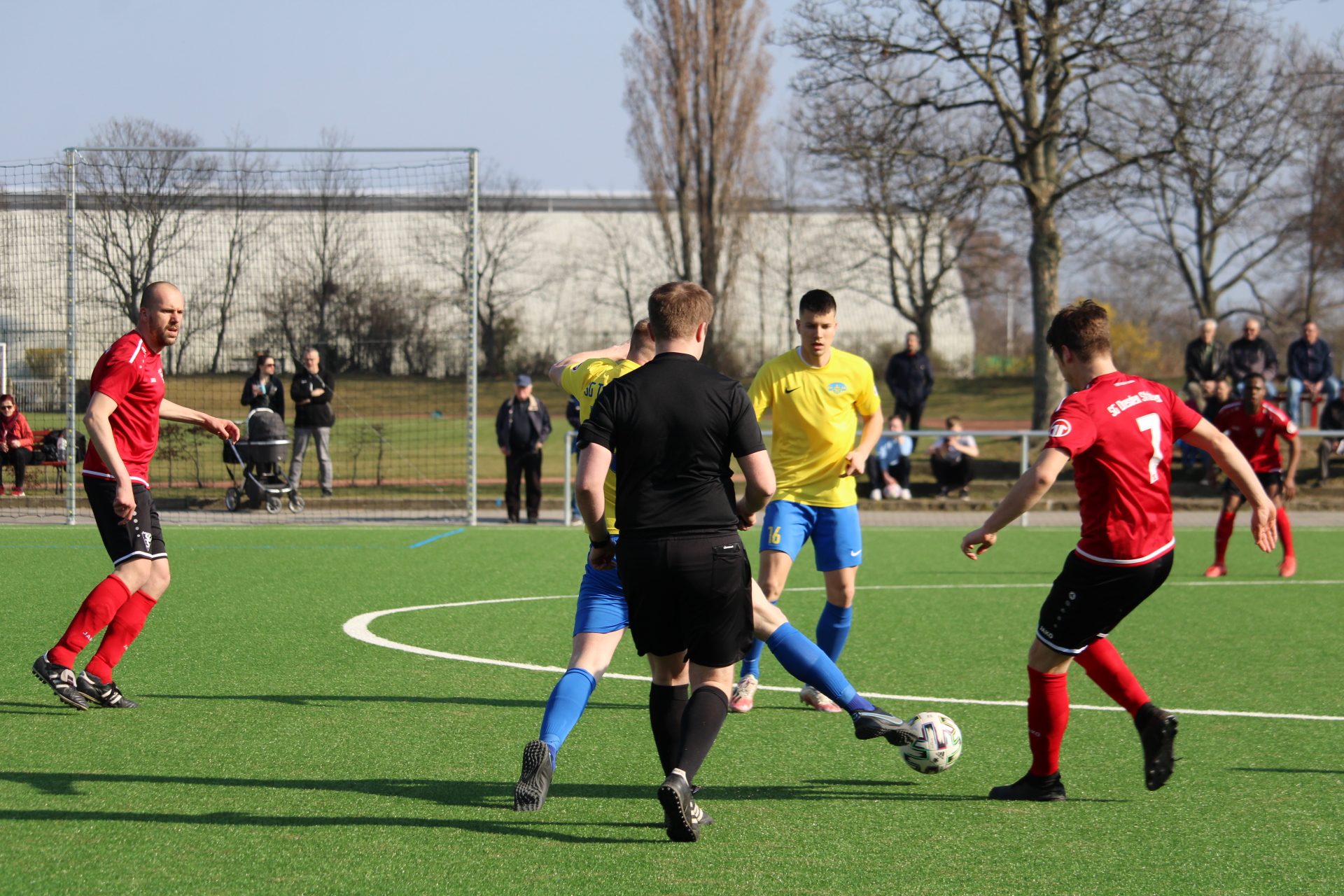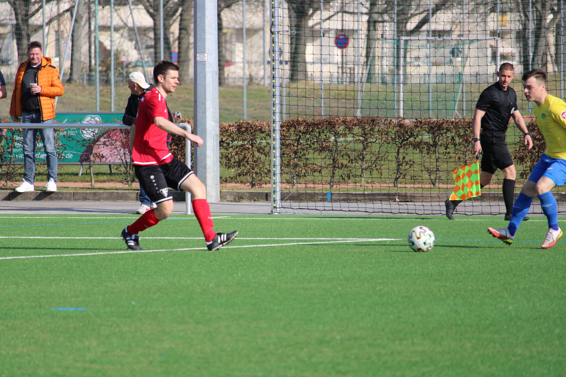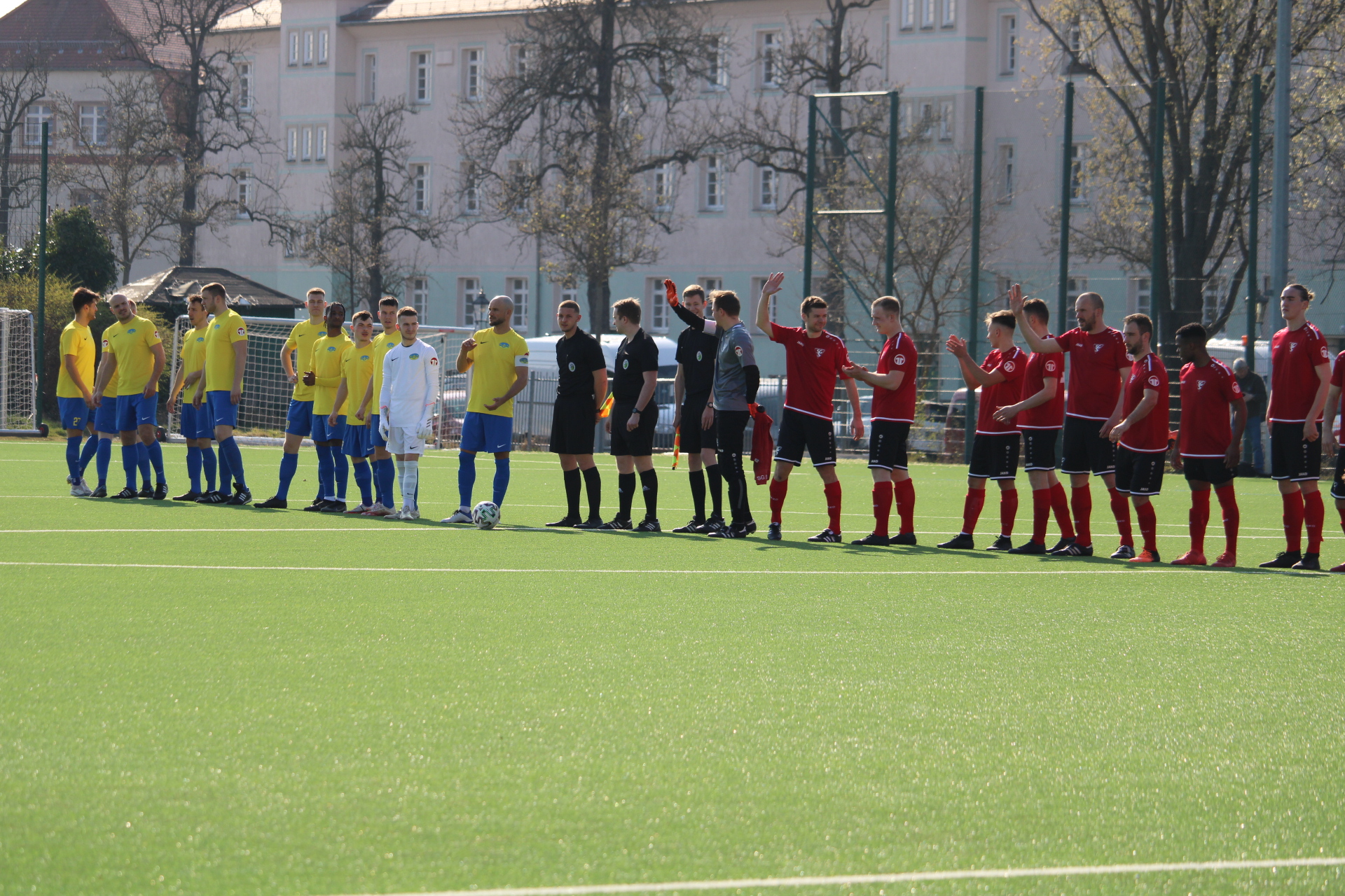 Im ersten Spiel nach der langen Zwangspause kamen zunächst die Gäste besser ins Spiel. Die Tauchaer waren die erste Viertelstunde Feldüberlegen und ließen den Ball sicher durch die eigenen Reihen laufen. Doch unsere Mannen agierten Defensiv sehr umsichtig und ließen keinen Platz zum Durchkommen. So konnte Taucha aus der optischen Überlegenheit kein Kapital schlagen und keine Abschlüsse vorweisen. Diesen konnte unsere Erste in der siebenten Minuten verweisen, als man einmal die Überlegenheit durchbrechen konnte und Christian Irmscher nach einem Konter zum Torschuss kam. Nachdem Anfangsdruck der Gäste kamen unsere Mannen im weiteren Verlauf immer besser ins Spiel und konnten sich dabei einige hochkarätige Chancen erspielen. Nach 20 Minuten wurde Maximilian Koch wenige Zentimeter vor dem Strafraum zu Fall gebracht. Den anschließenden Freistoß schlenzte Florian Hornig flach aufs lange Eck, welchen der Gästeschlussmann gerade noch herausfischte. Vier Minuten später konnte der Tauchaer Keeper eine Freistoßhereingabe von David Böhme nicht festhalten und Karl Kowaltschik konnte ihm den Ball wegspitzeln. Jedoch bekamen er und Toni Stelzer den Ball nicht über die Linie. Anschließend war es Irmscher, der nach einer Ecke am Elfmeterpunkt unbehelligt zum Kopfball kam. Aber auch er scheiterte am Schlussmann (26.). Nachdem man die Chancen ausließ, folgte in der 31. Minute der Rückschlag. Im Spielaufbau wurde Christian Kunath den Ball nicht los und übersah einen Angreifer im Rücken, der ihm den Ball wegschnappte. Trotz gemeinsamer Bemühungen gelang es nicht mehr den Gegentreffer zu verhindern.